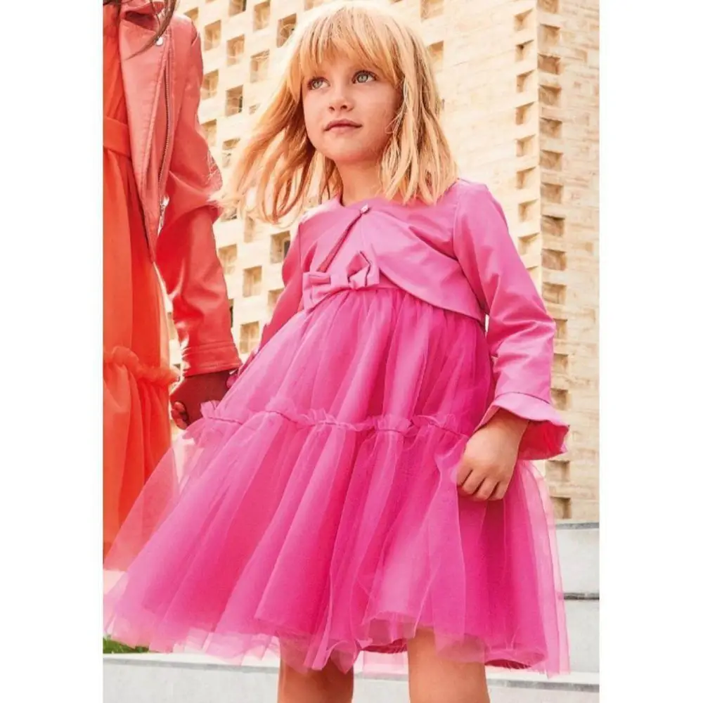 L’abito cerimonia Sarabanda coprispalle è pensato per bambine dai 9 mesi agli 8 anni. Il modello veste ogni occasione speciale con uno stile raffinato e allegro. La tonalità fuxia dona energia e rende ogni look vivace.
