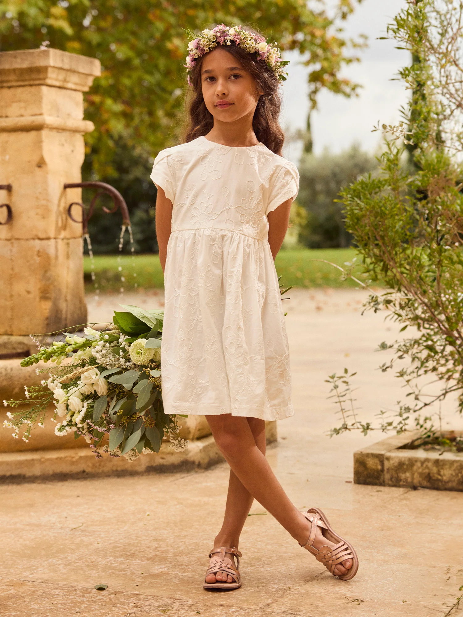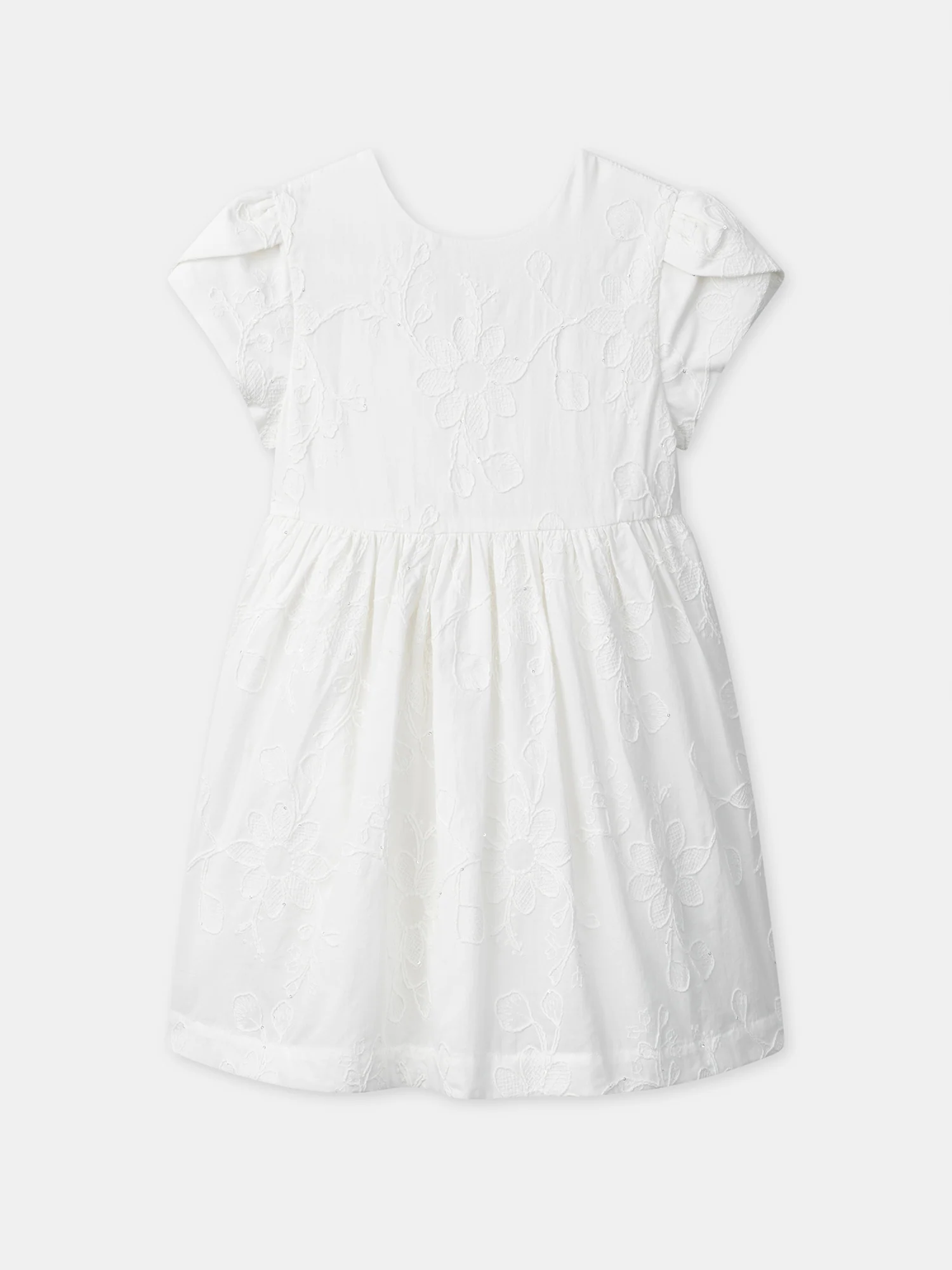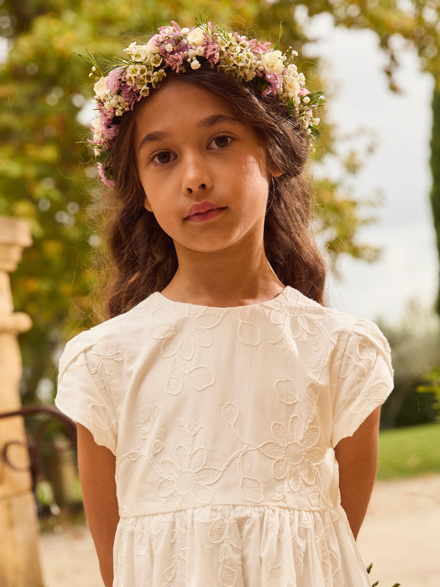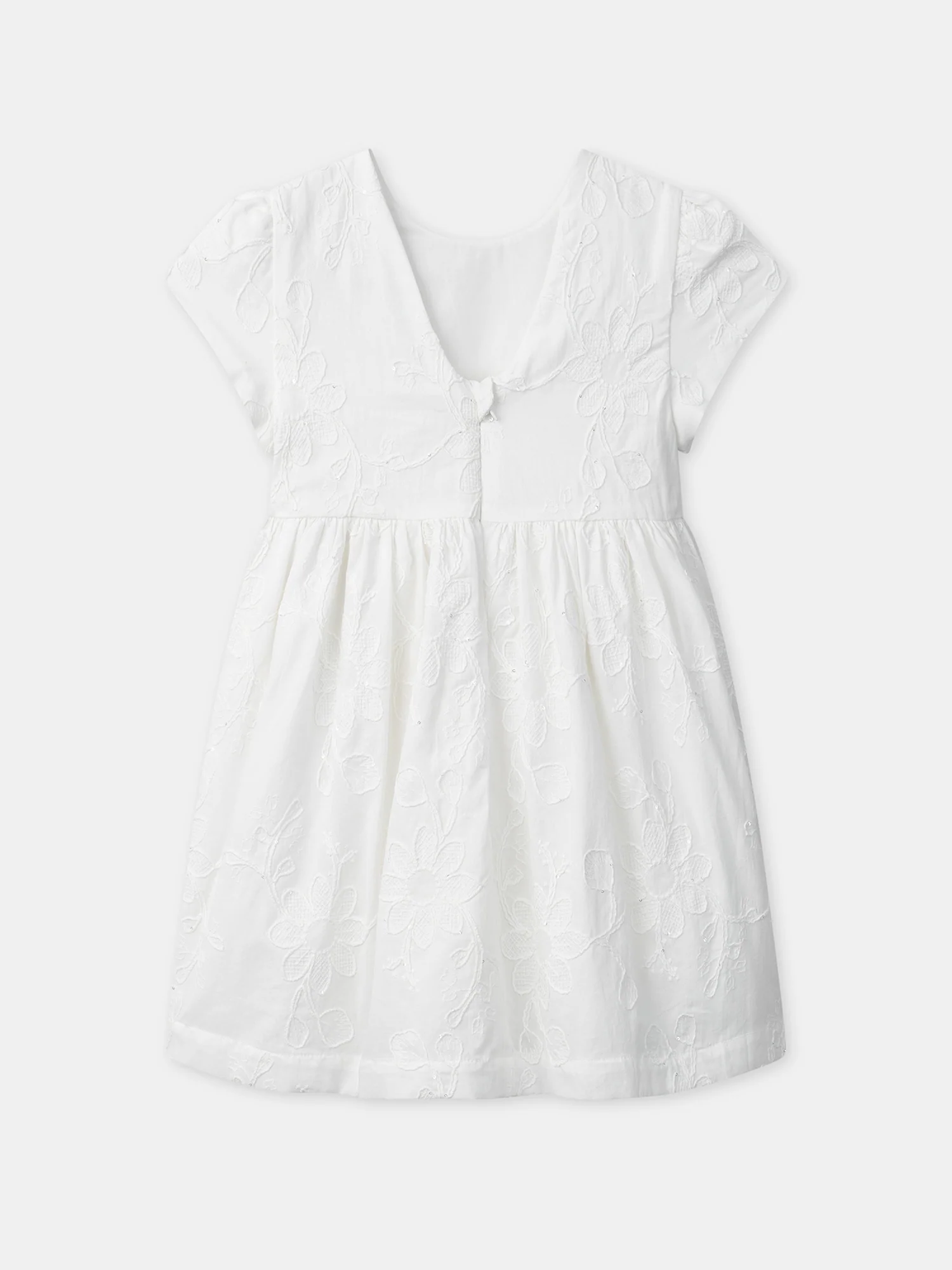 Abito Ecru con Ricami di Fiori per Bambina