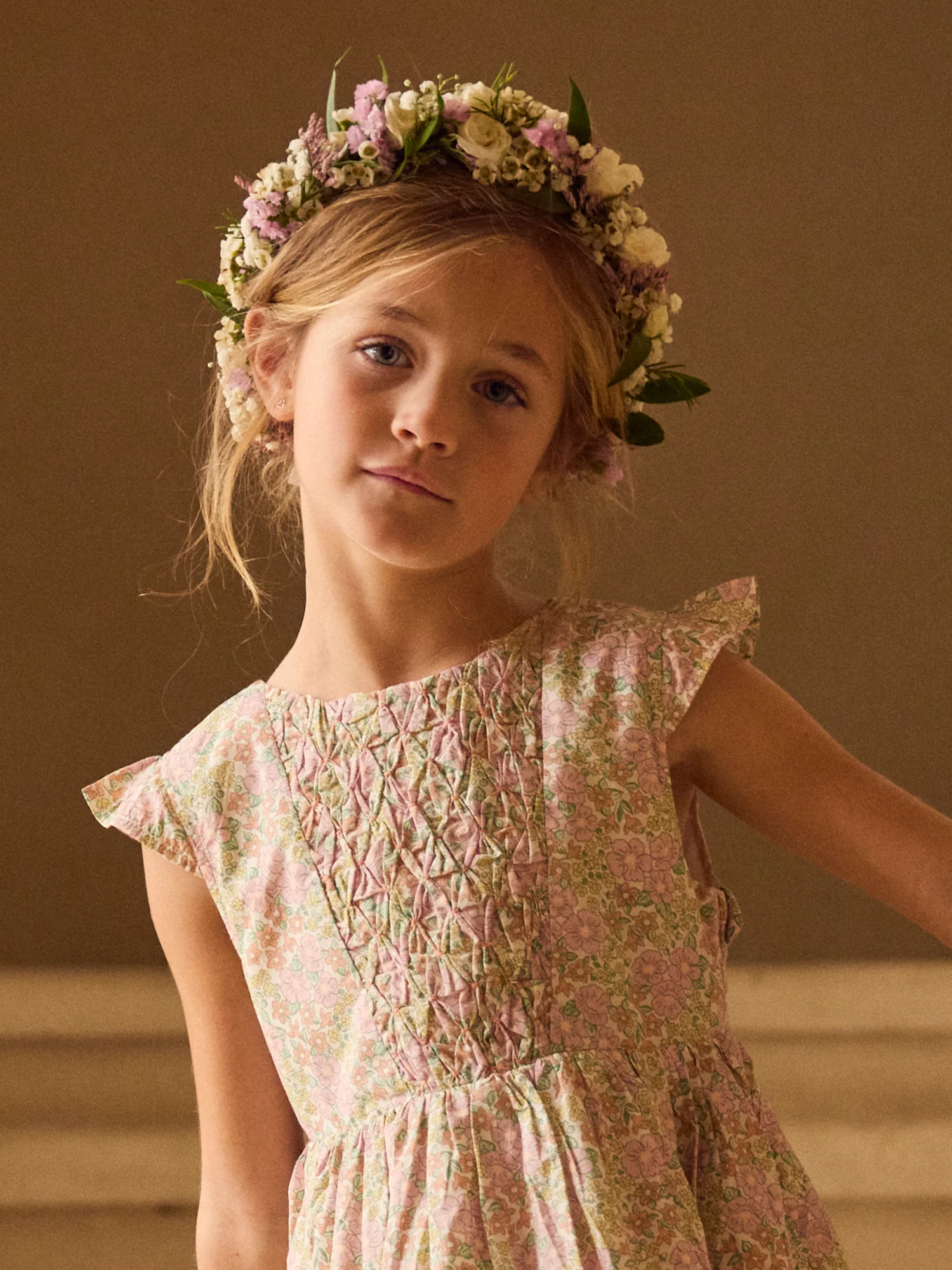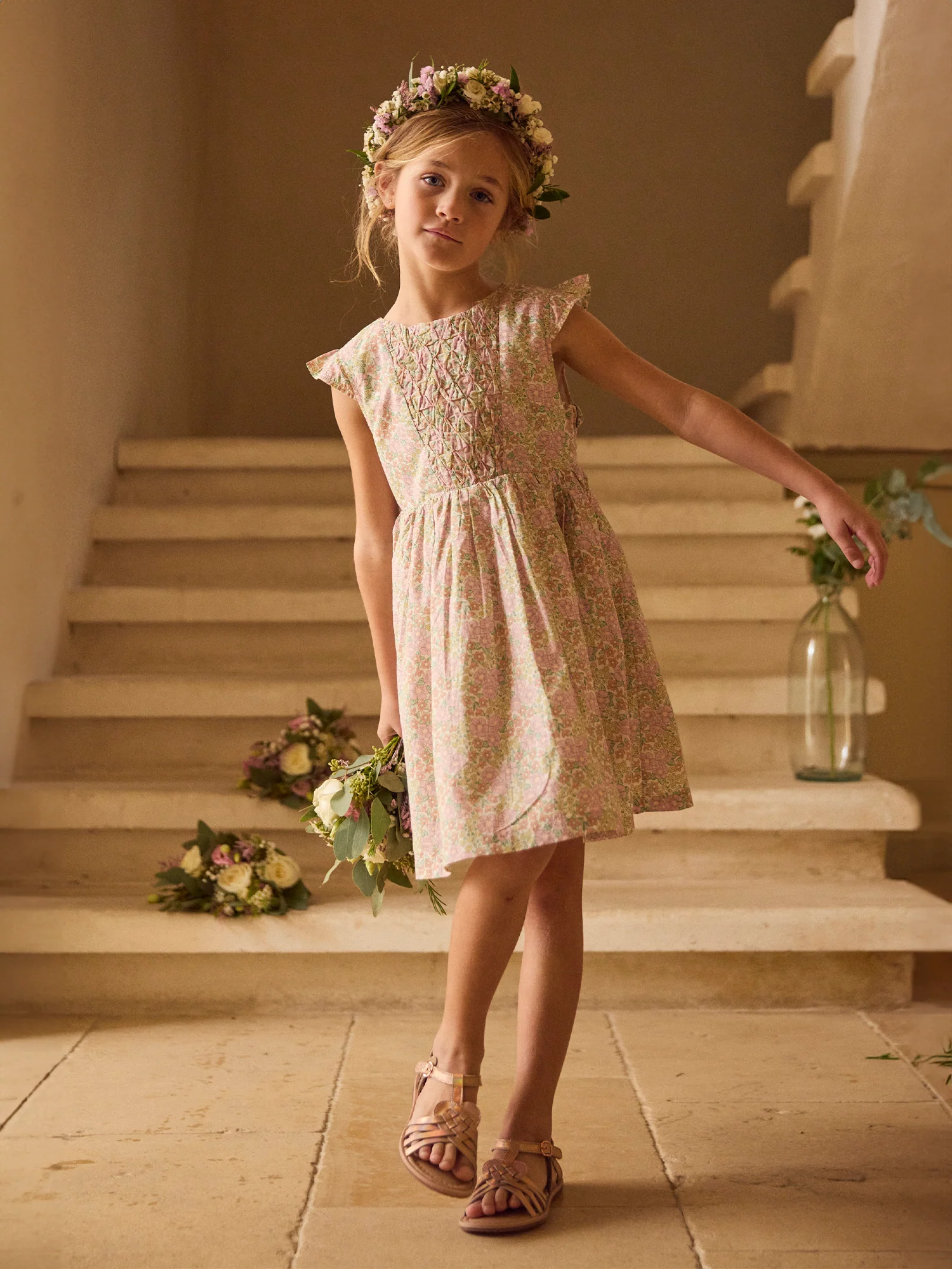 Abito romantico e delicato, perfetto per la primavera e l’estate. Foderato in cotone, presenta un taglio fluido con una elegante schiena a V. I fiori e il fiocco sulla schiena creano uno stile morbido e festoso.