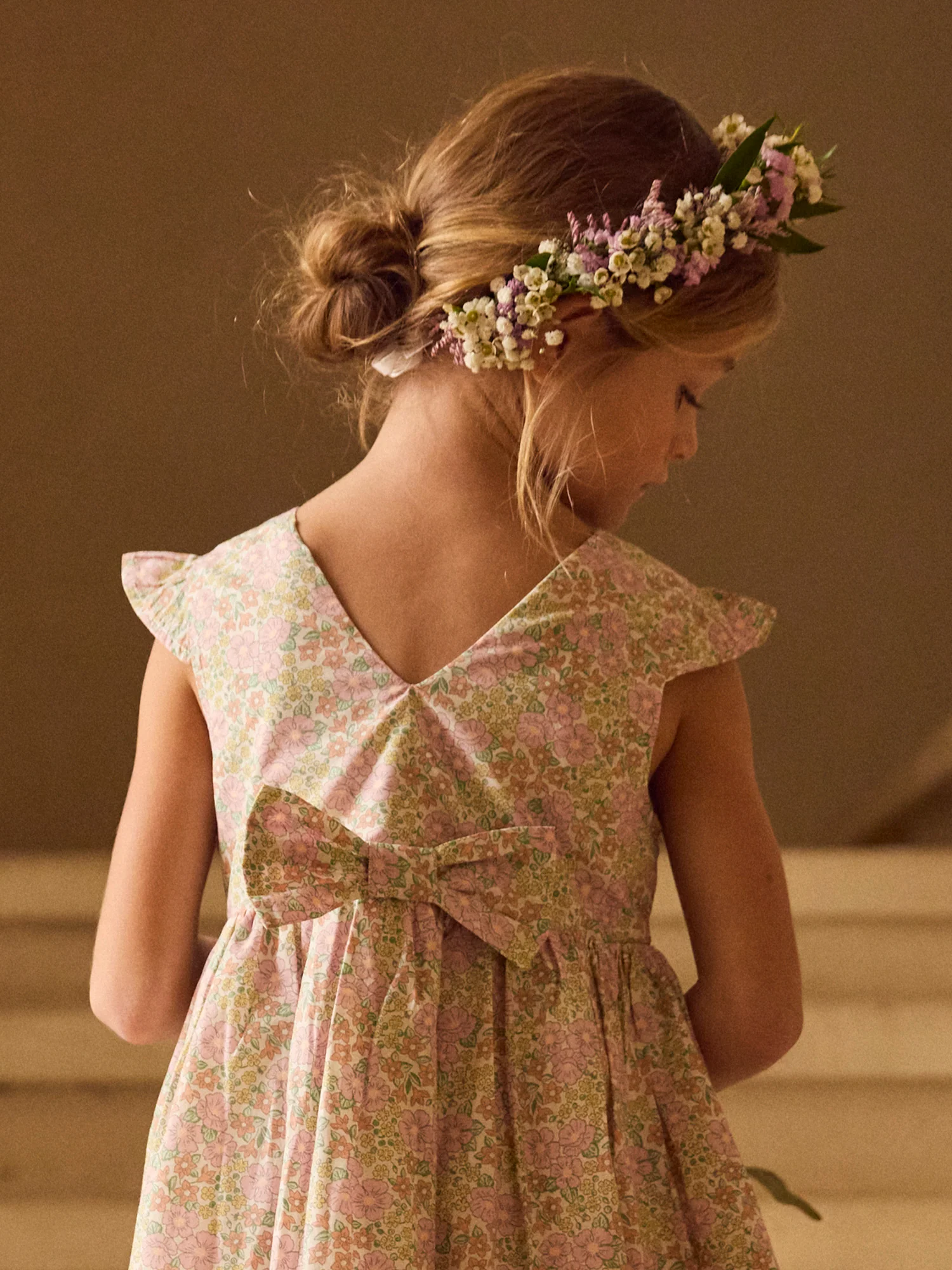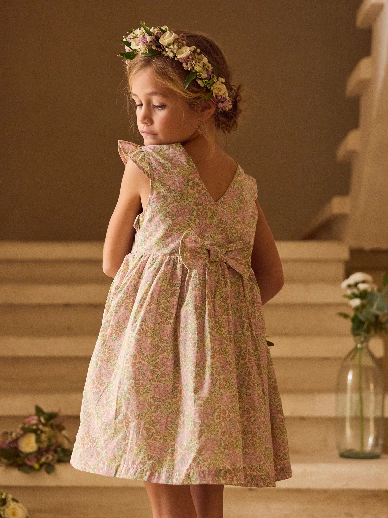Abito Stampato Floreale con Fiocco per Ragazze