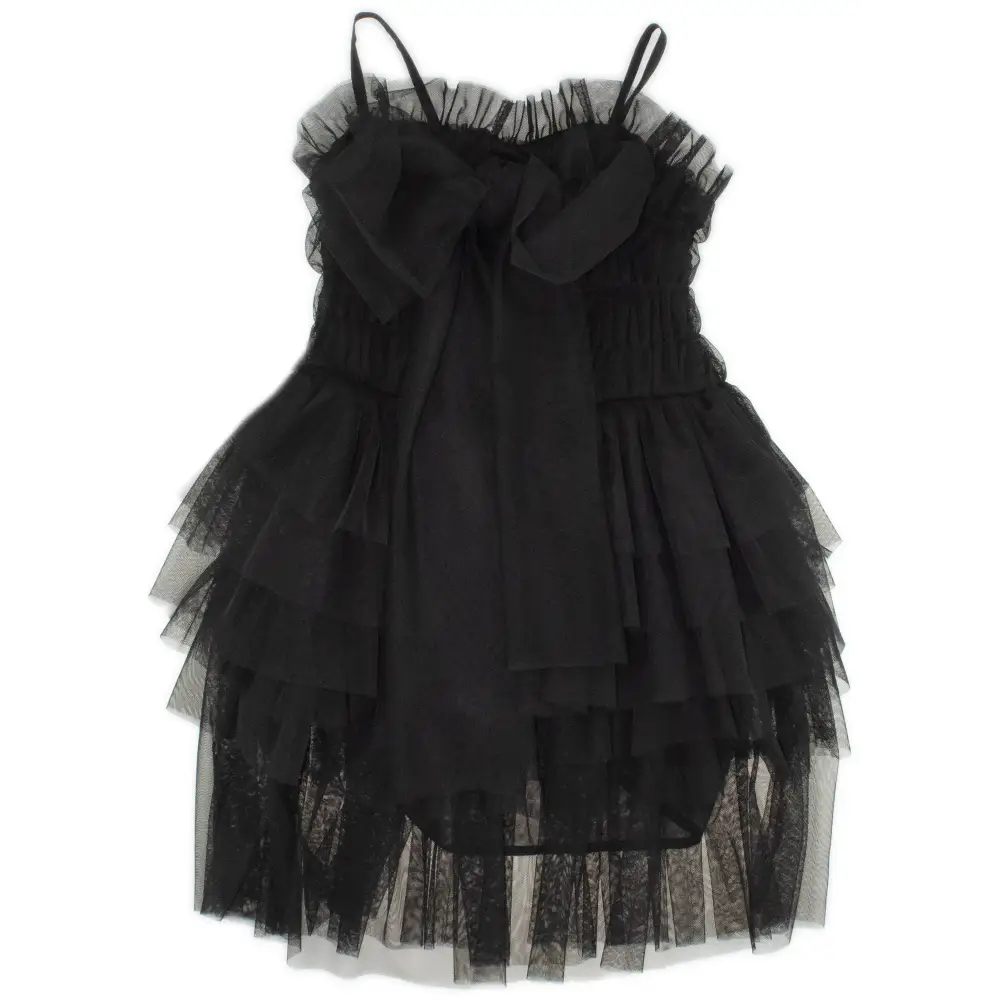 Y-Clù cura i dettagli: la parte superiore trasparente si abbina con delicati volant che decorano l’abito tulle ragazza 8-16 anni senza appesantirlo. Il taglio svasato rende il capo comodo e adatto a diverse fisicità. Il colore nero si abbina facilmente a scarpe chiare o scure.
