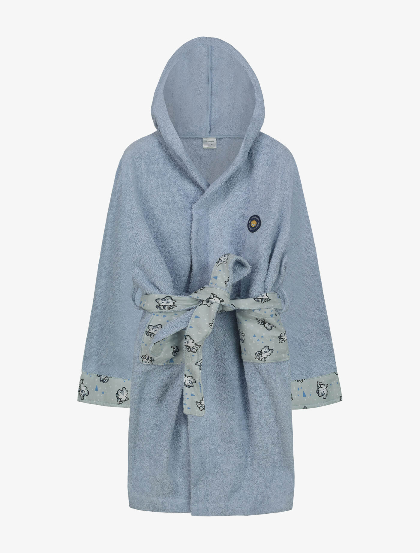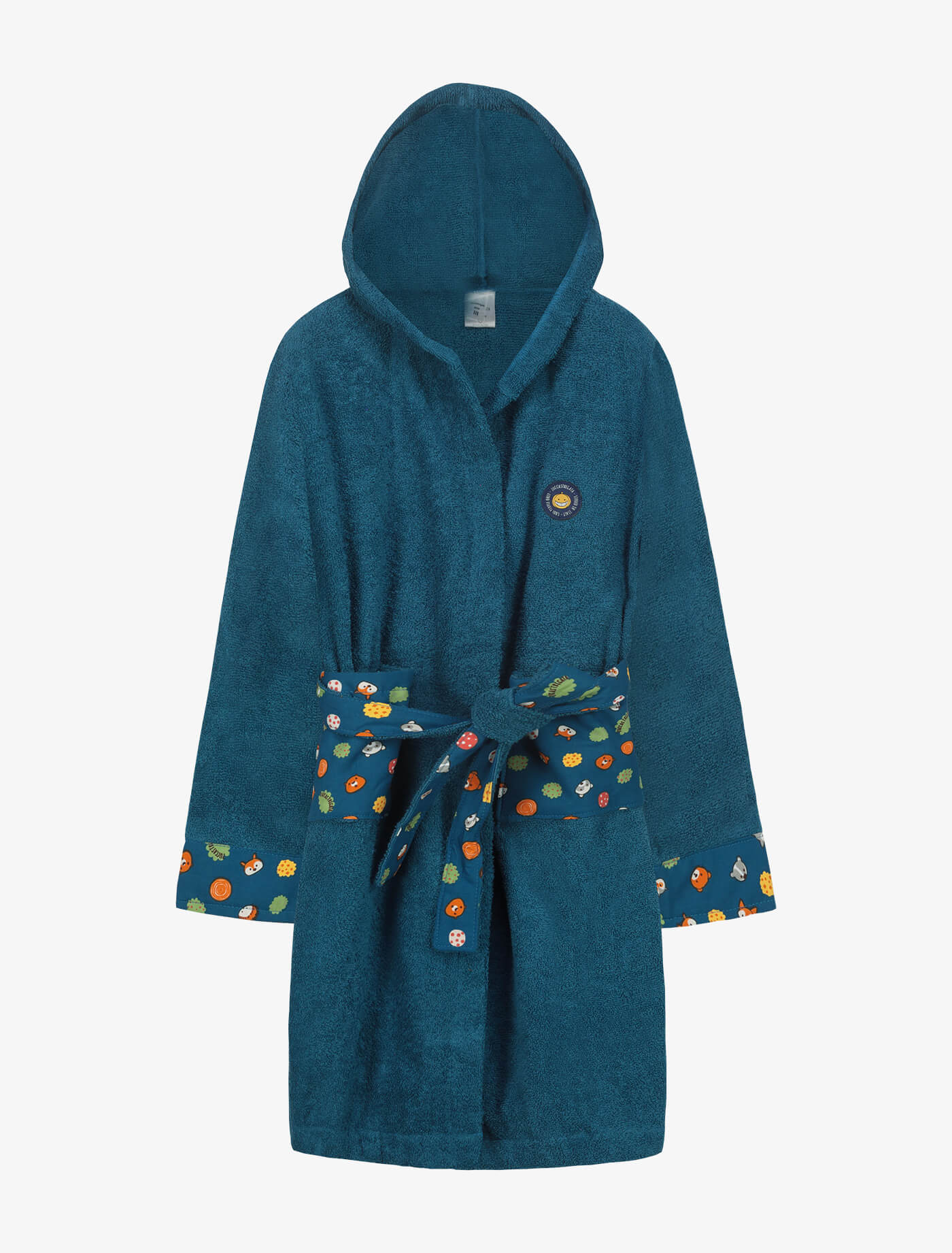 Accappatoio bambino con cappuccio e cintura, realizzato in morbida spugna e divertenti fantasie in cotone