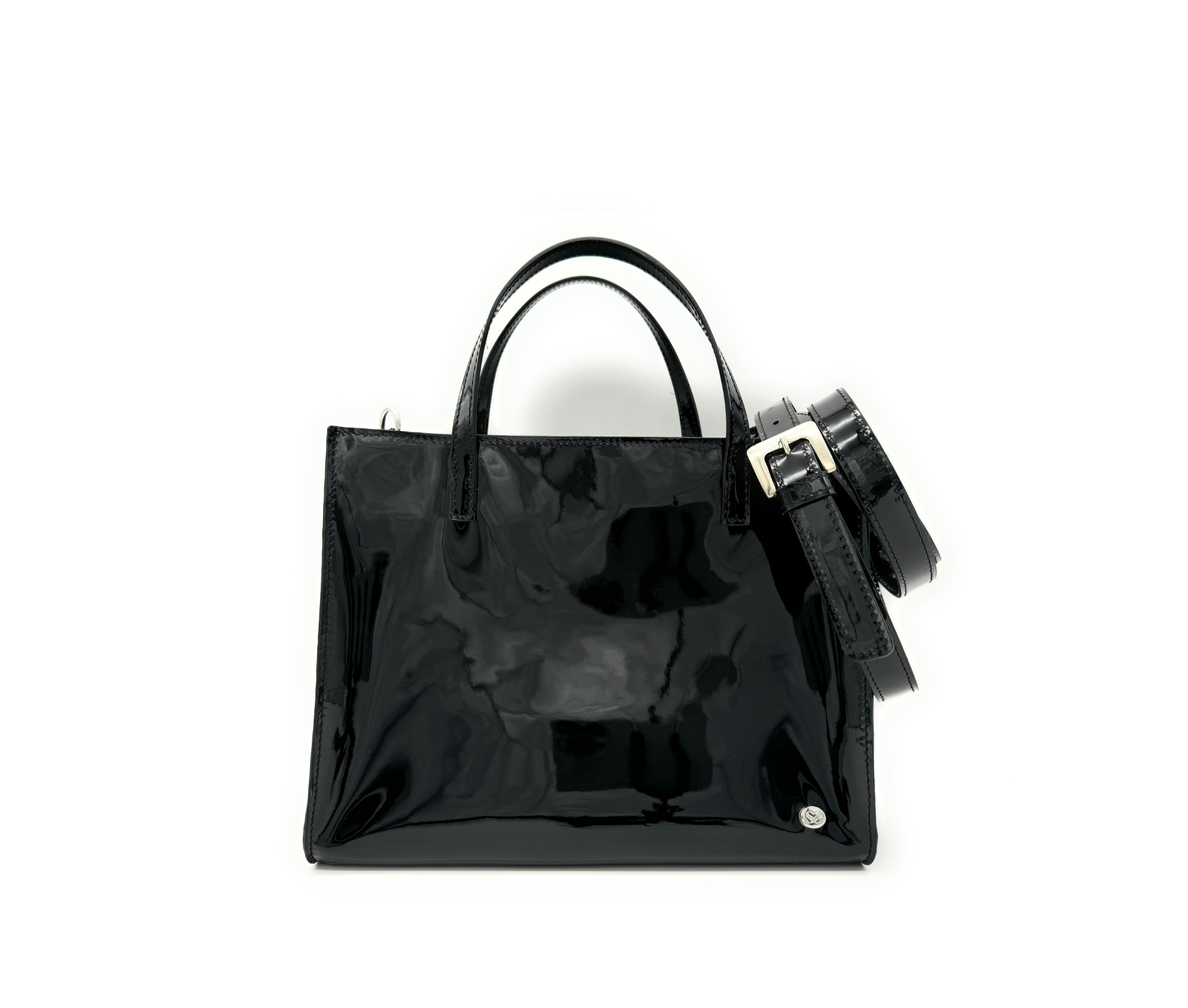 Borsa in pelle vernice, color nero.