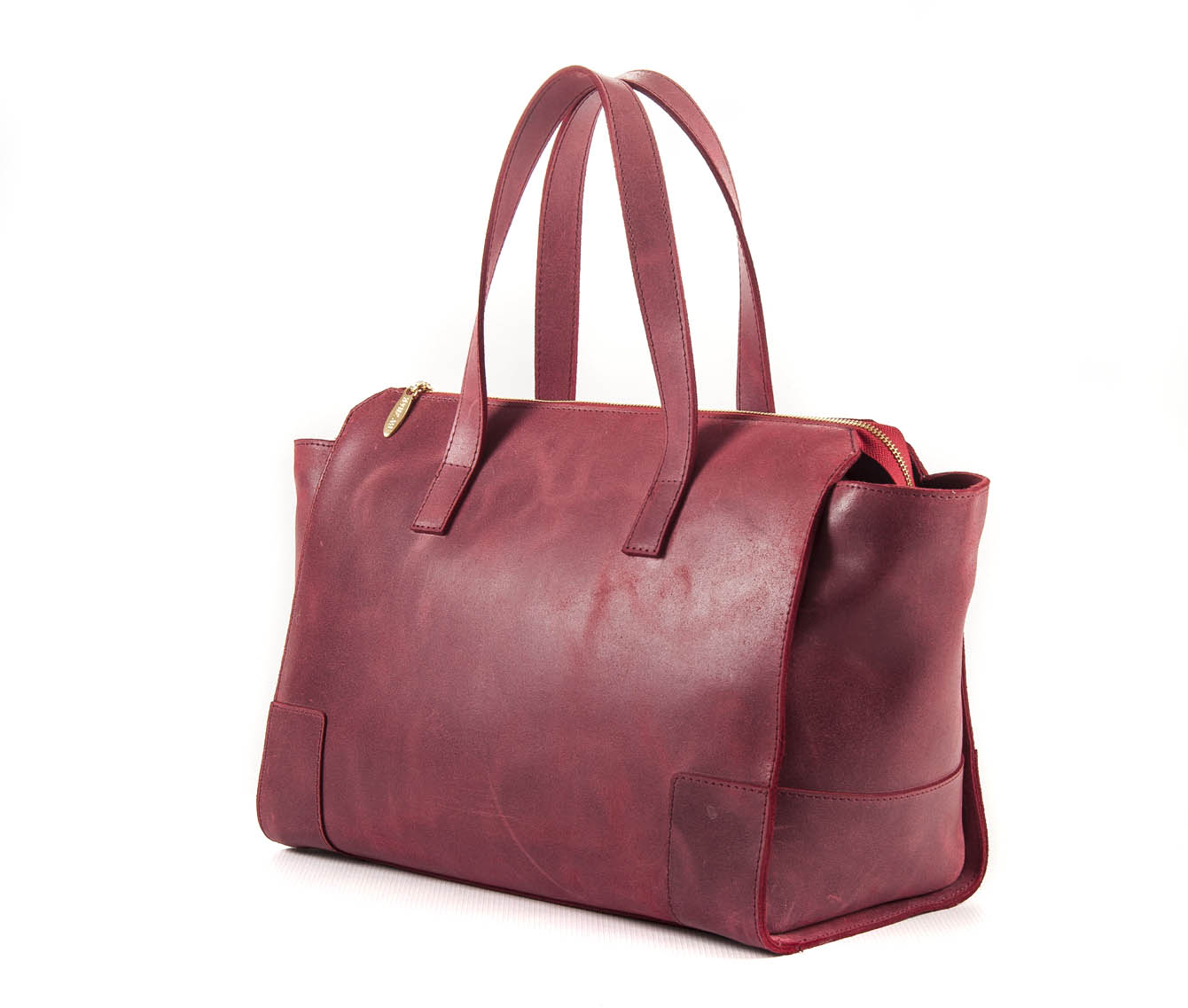 Borsa a mano o a spalla in vera pelle color rosso dall’aspetto vintage, ma distinto.