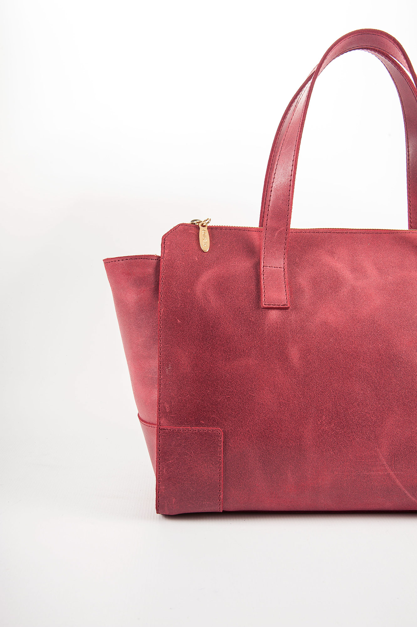 Shopping bag in vera pelle color rosso vintage a mano o a spalla