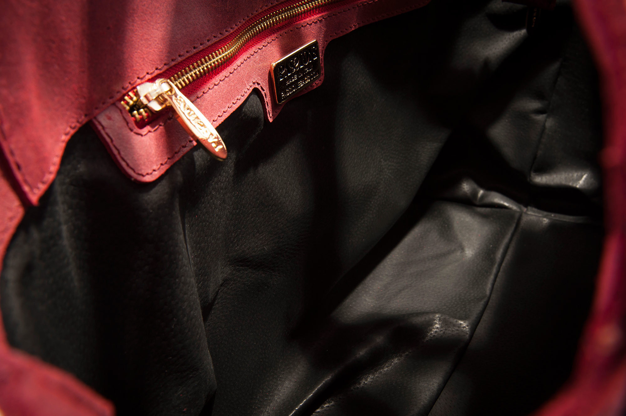 Chiusura a zip con interno fodera interamente in pelle color nero e due comode tasche di cui una una con lampo e una porta smartphone.