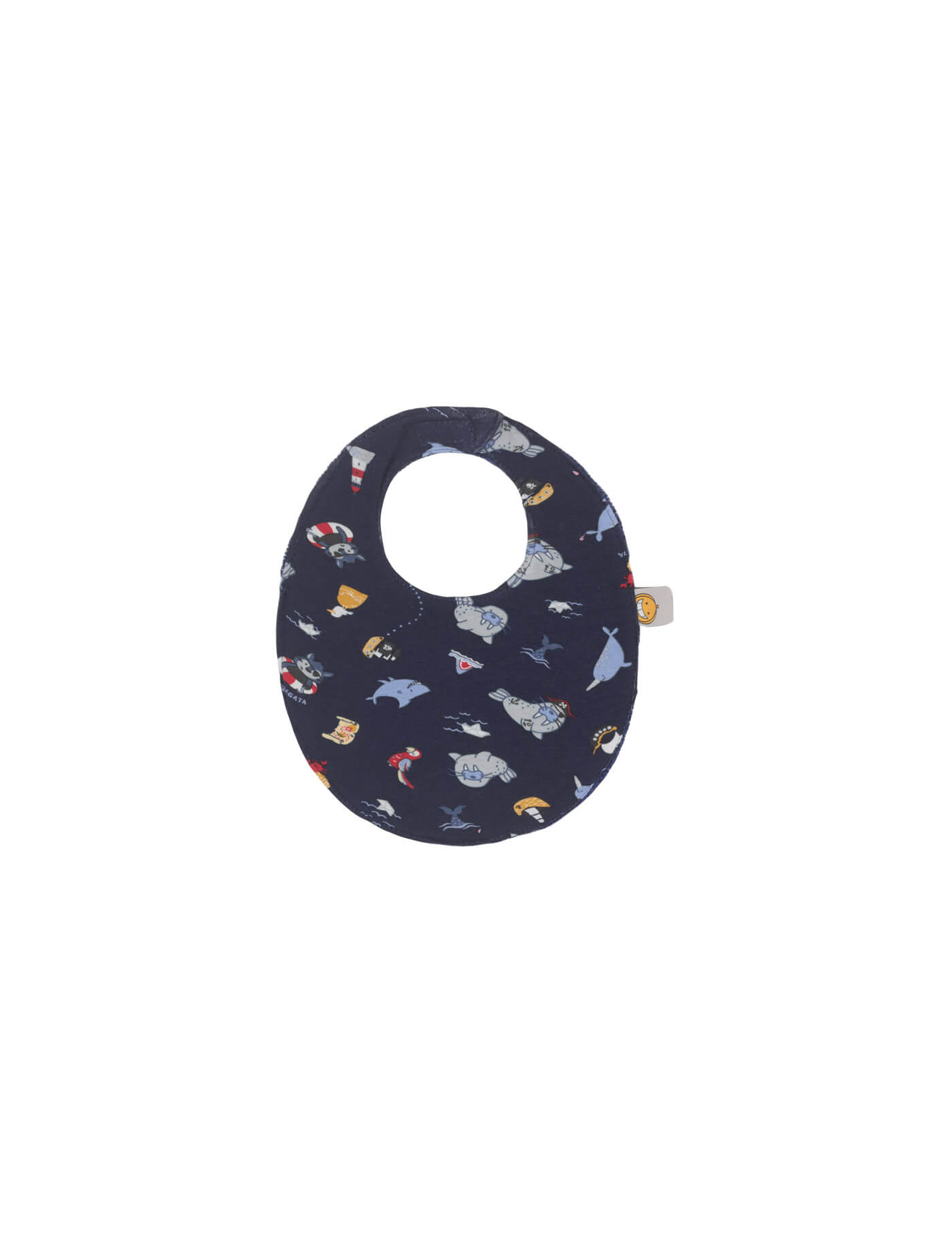 Bavaglino primi mesi in cotone fantasia e morbida spugna. Chiusura con velcro