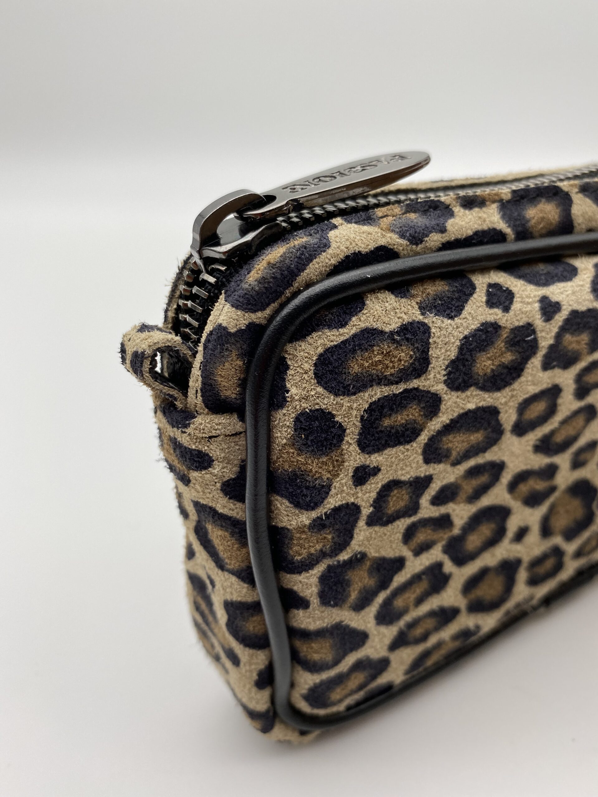Ai bordi della lampo ci sono due piccoli attacchi in pelle che consentono di attaccare una tracolla esterna, questo permette di aggiungere una diversa funzionalità all’astuccio.