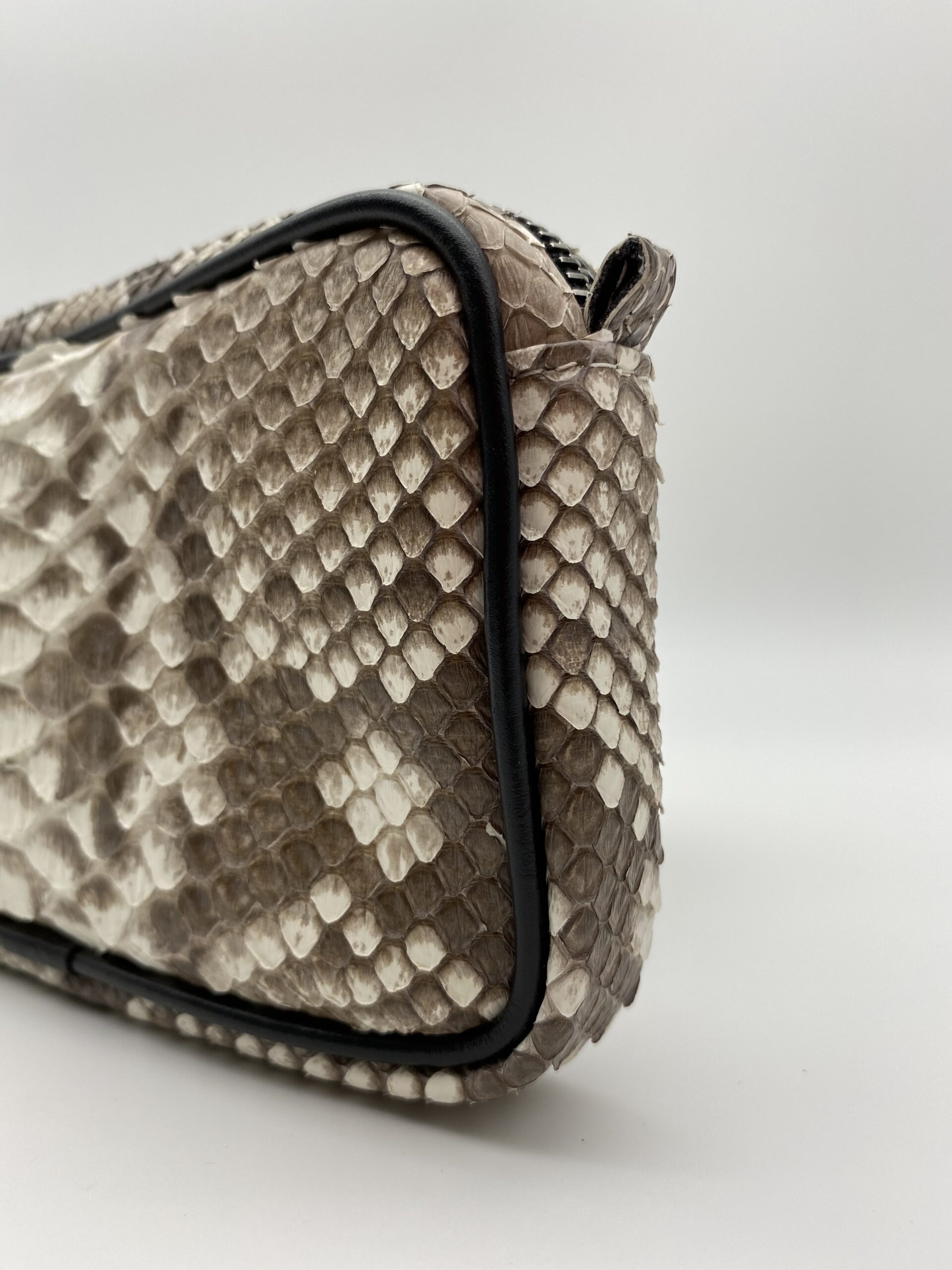Ai bordi della lampo ci sono due piccoli attacchi in pelle che consentono di attaccare una tracolla esterna, questo permette di aggiungere una diversa funzionalità all’astuccio.
