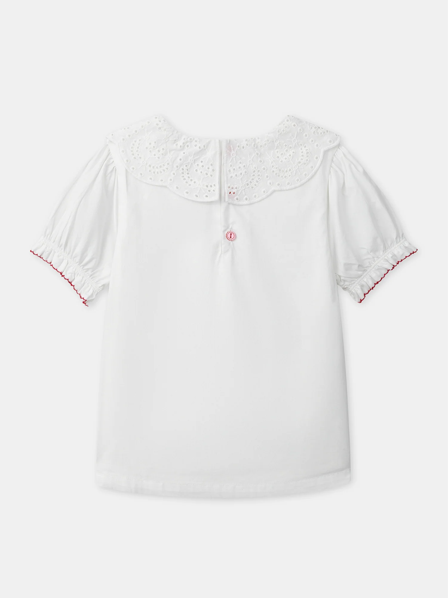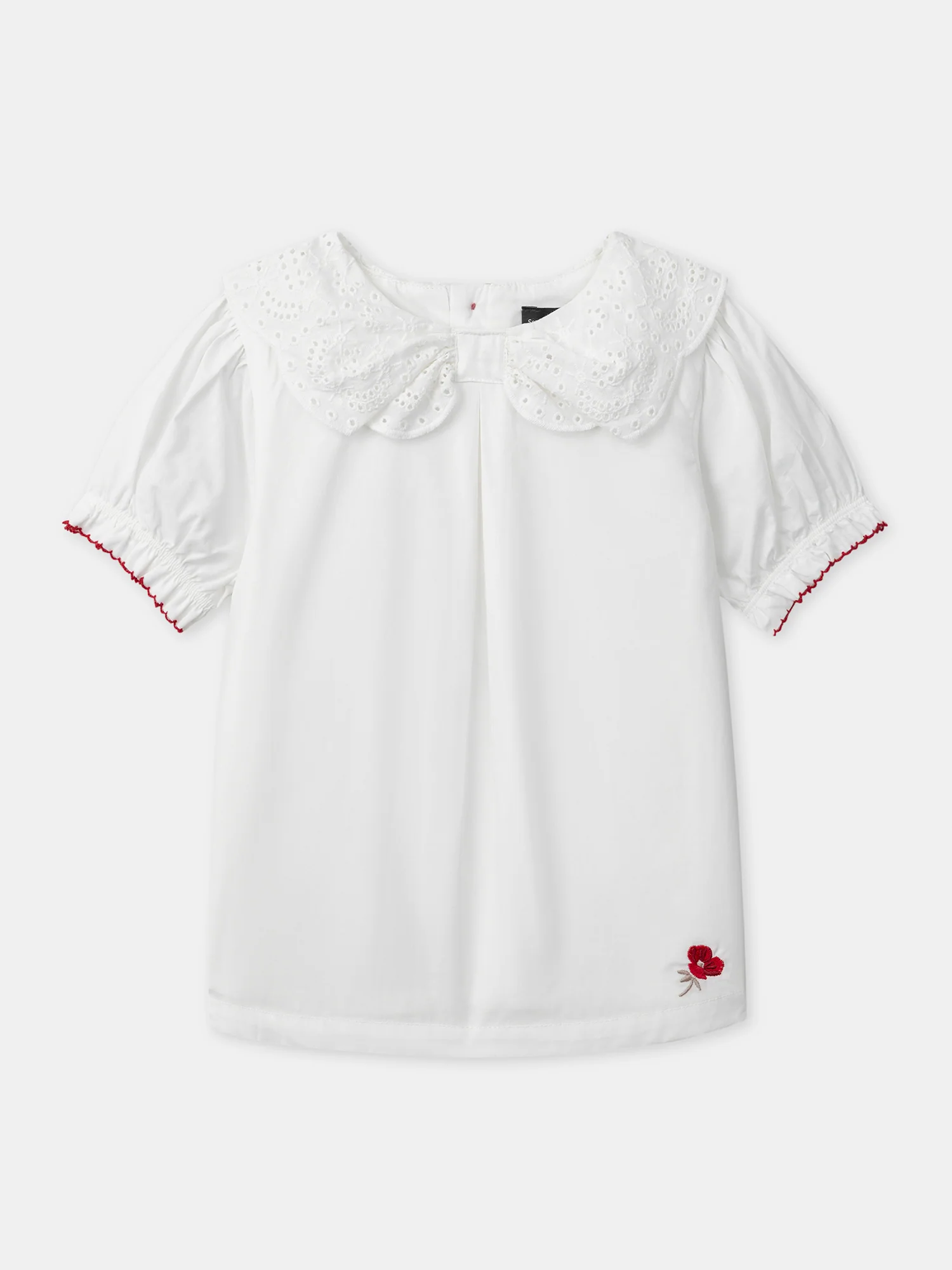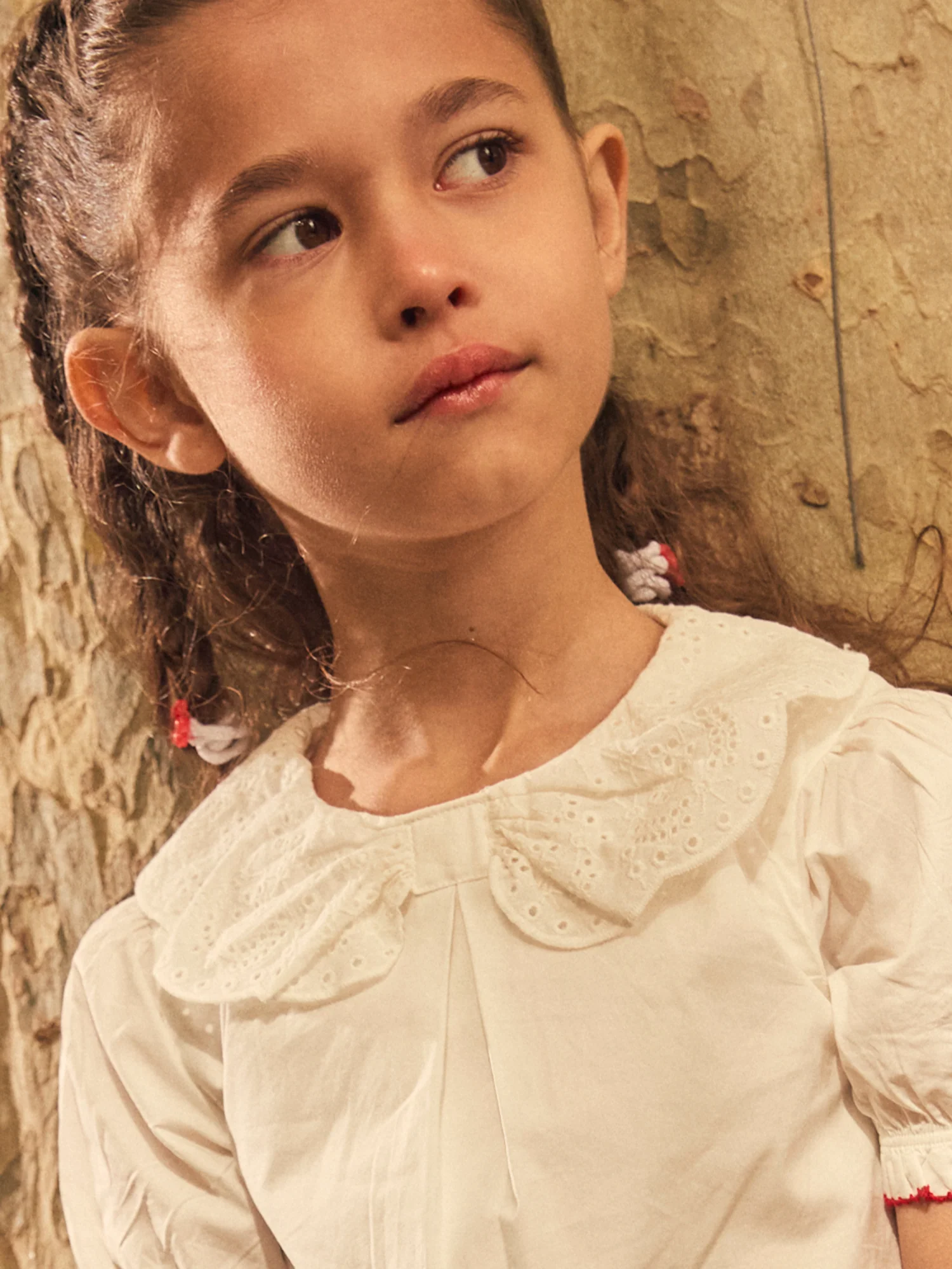 Col claudine Manches ballons Doublure en coton Ouverture boutons dans le dos