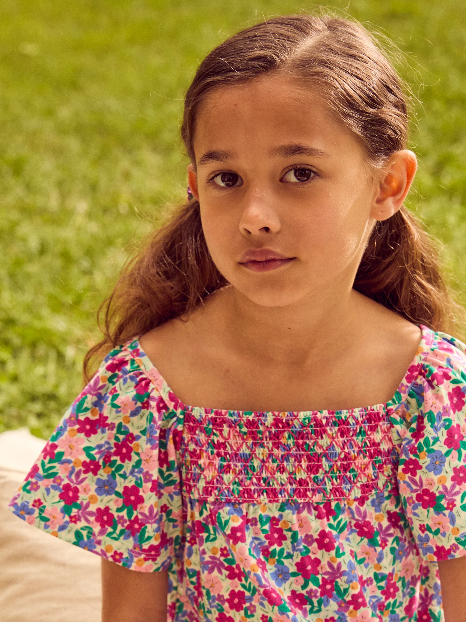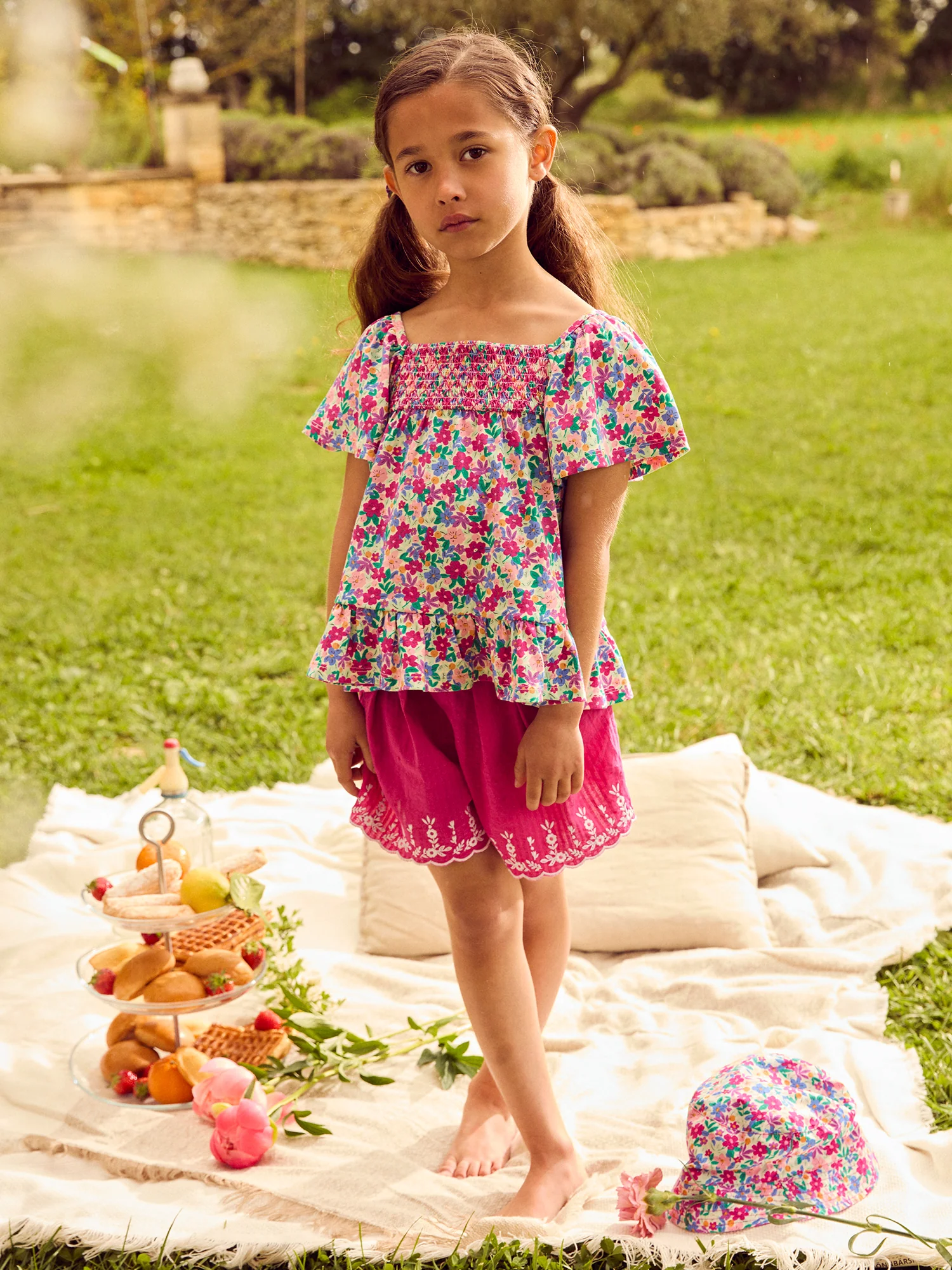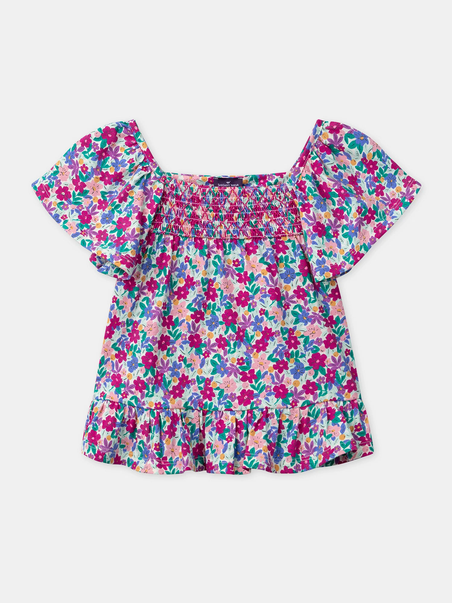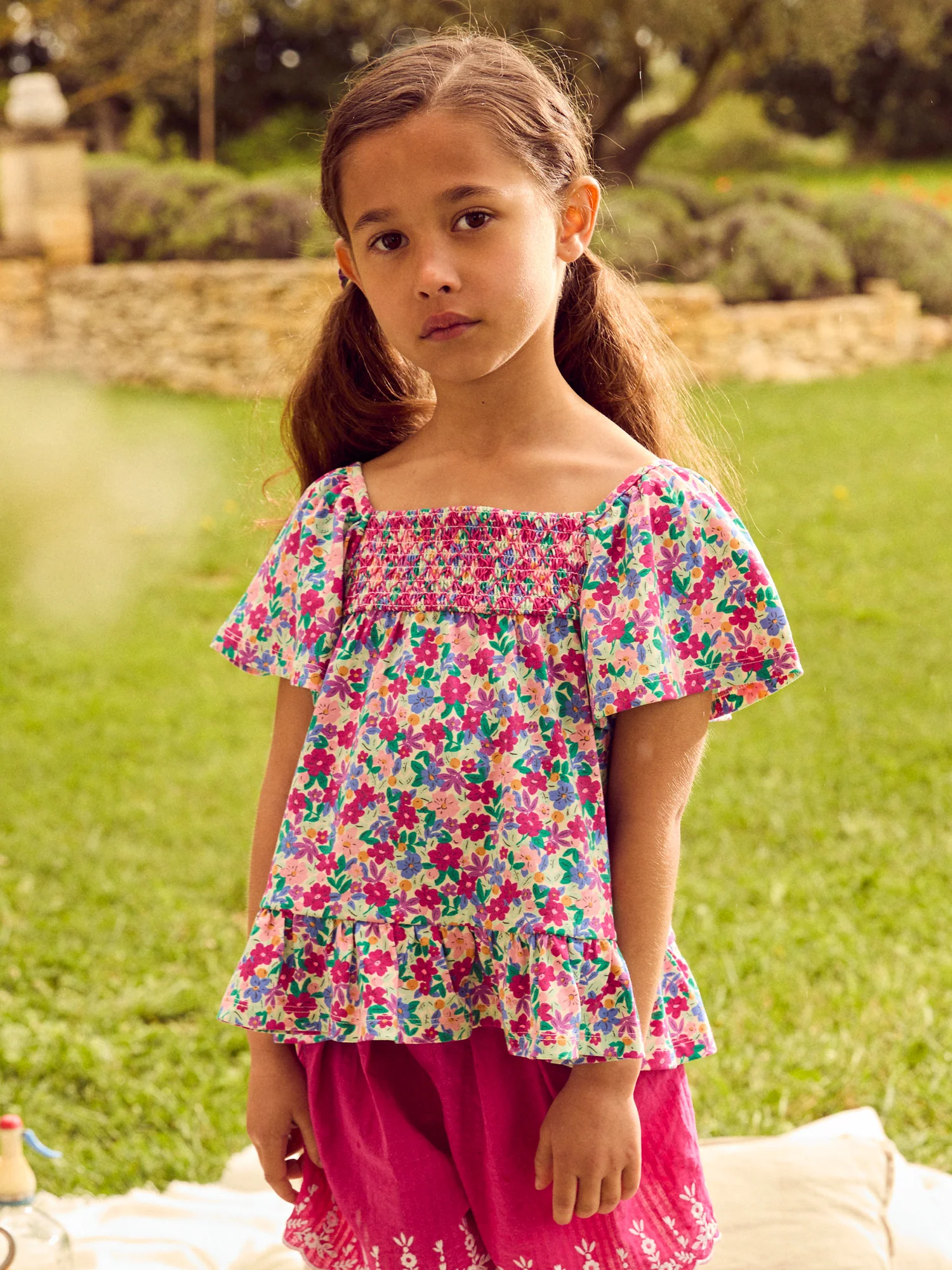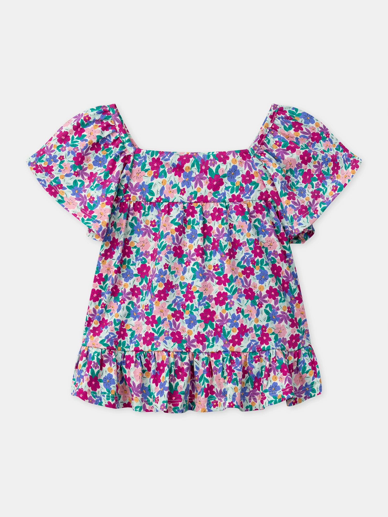 Blouse imprimé fleuri et manches volantes Fille