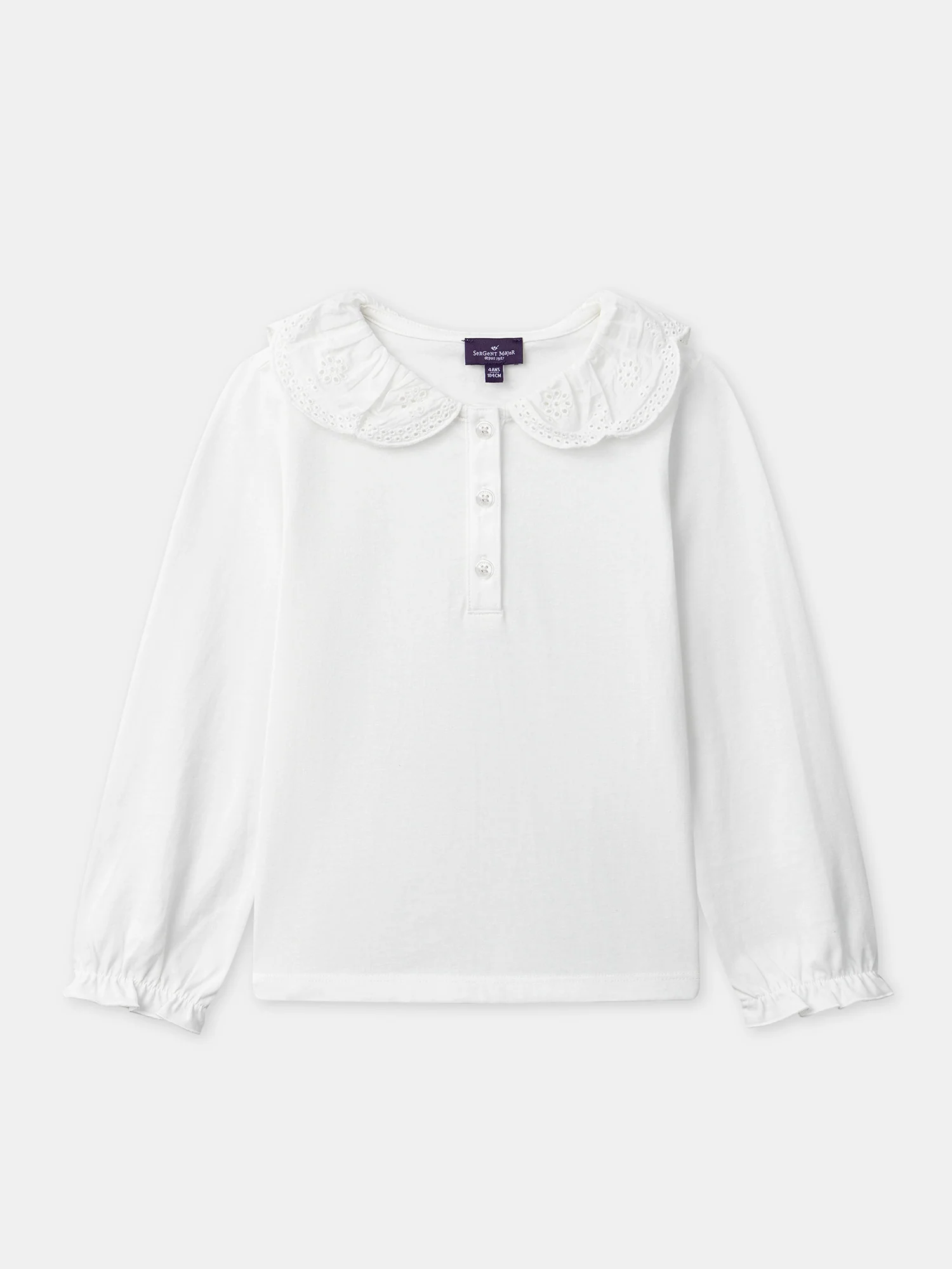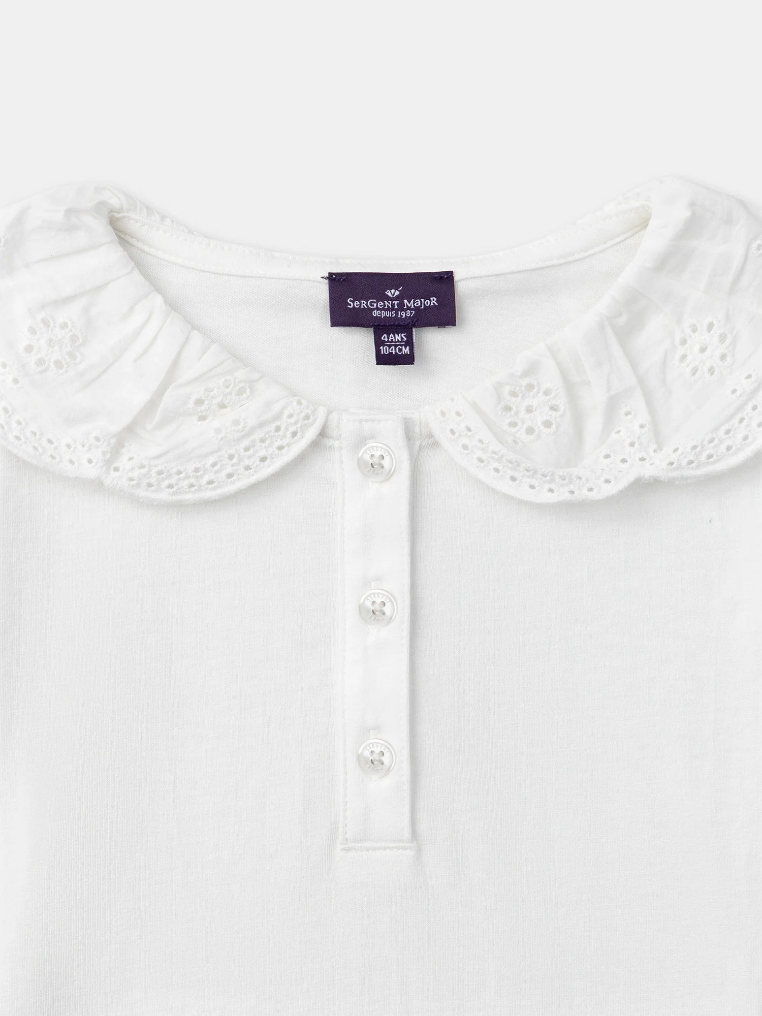 Per una ragazza dallo stile classico, perfetta per la mezza stagione. Il morbido jersey e il suo colletto strutturato alla Peter Pan offrono comfort e forma. Le ricami inglesi e le maniche elastiche aggiungono un fascino senza tempo.