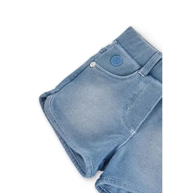 Questi shorts bambina effetto denim valorizzano ogni outfit. Si abbinano facilmente a t-shirt colorate, canotte o felpe leggere. Le cuciture dettagliate e le tasche frontali creano uno stile autentico tipo jeans, ma senza rigidità. Il tessuto è leggero e traspirante, ideale per la stagione estiva.