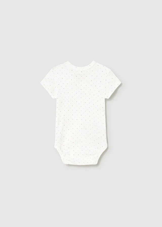 Body unisex a manica corta Mayoral, disponibile in due opzioni: bianco semplice e panna con pois beige, realizzato in cotone morbido e caldo per il massimo comfort. Art. 02711-011/-014