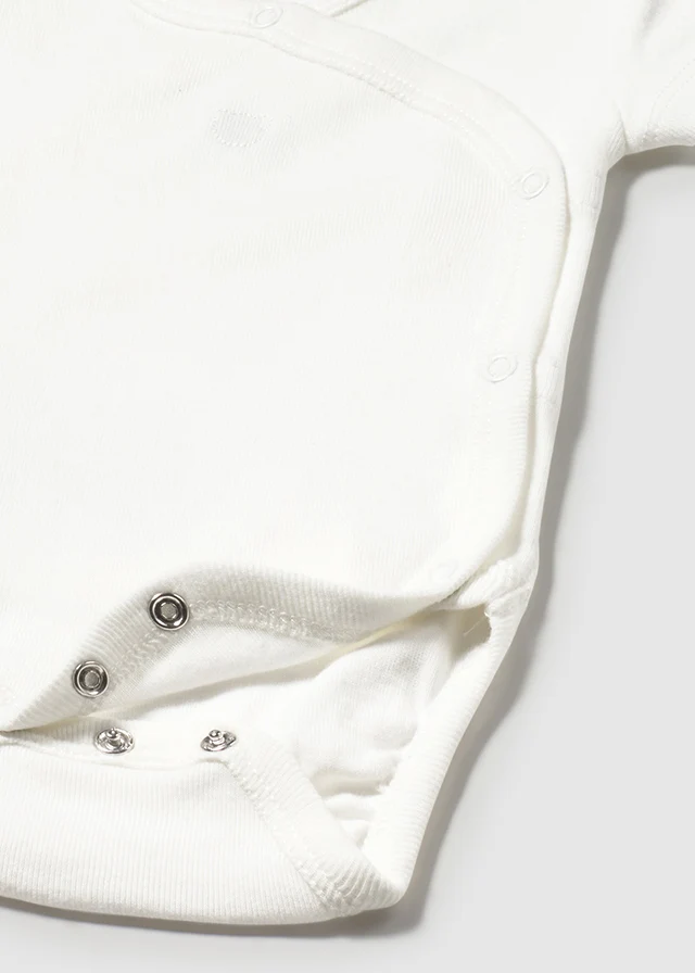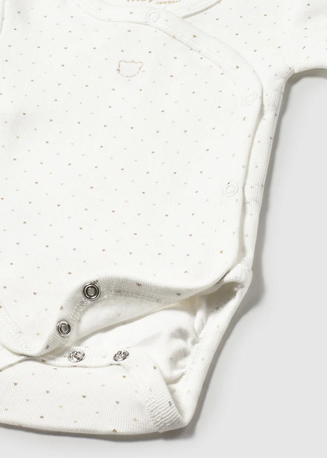 Body unisex a manica corta Mayoral, disponibile in due opzioni: bianco semplice e panna con pois beige, realizzato in cotone morbido e caldo per il massimo comfort.