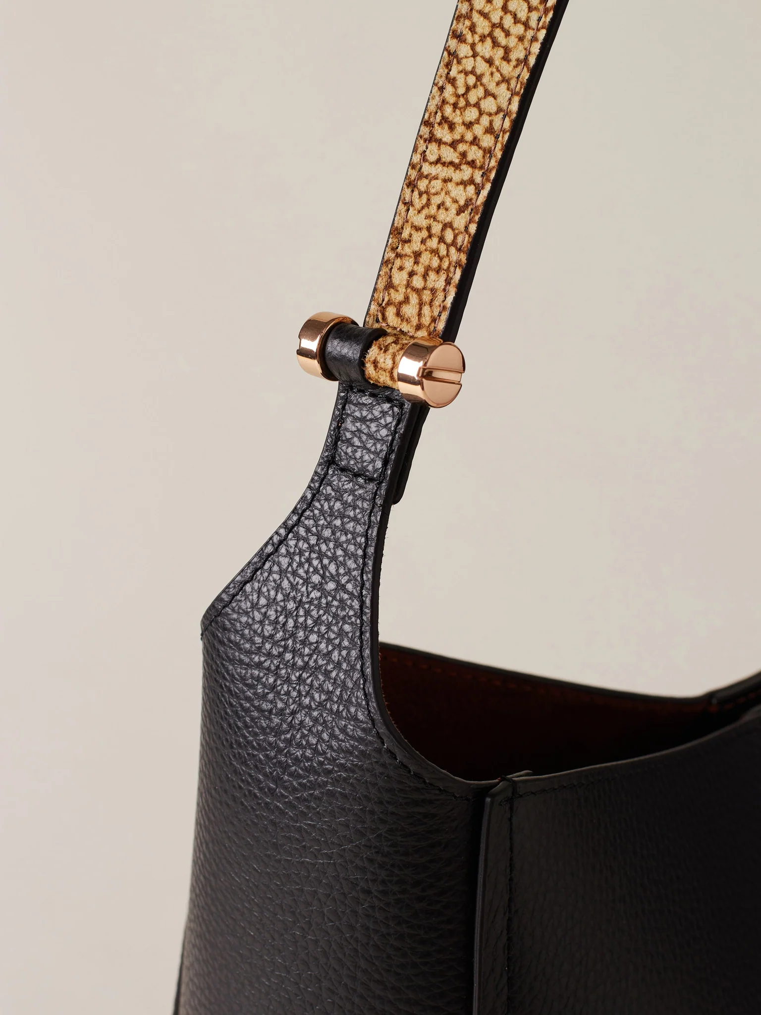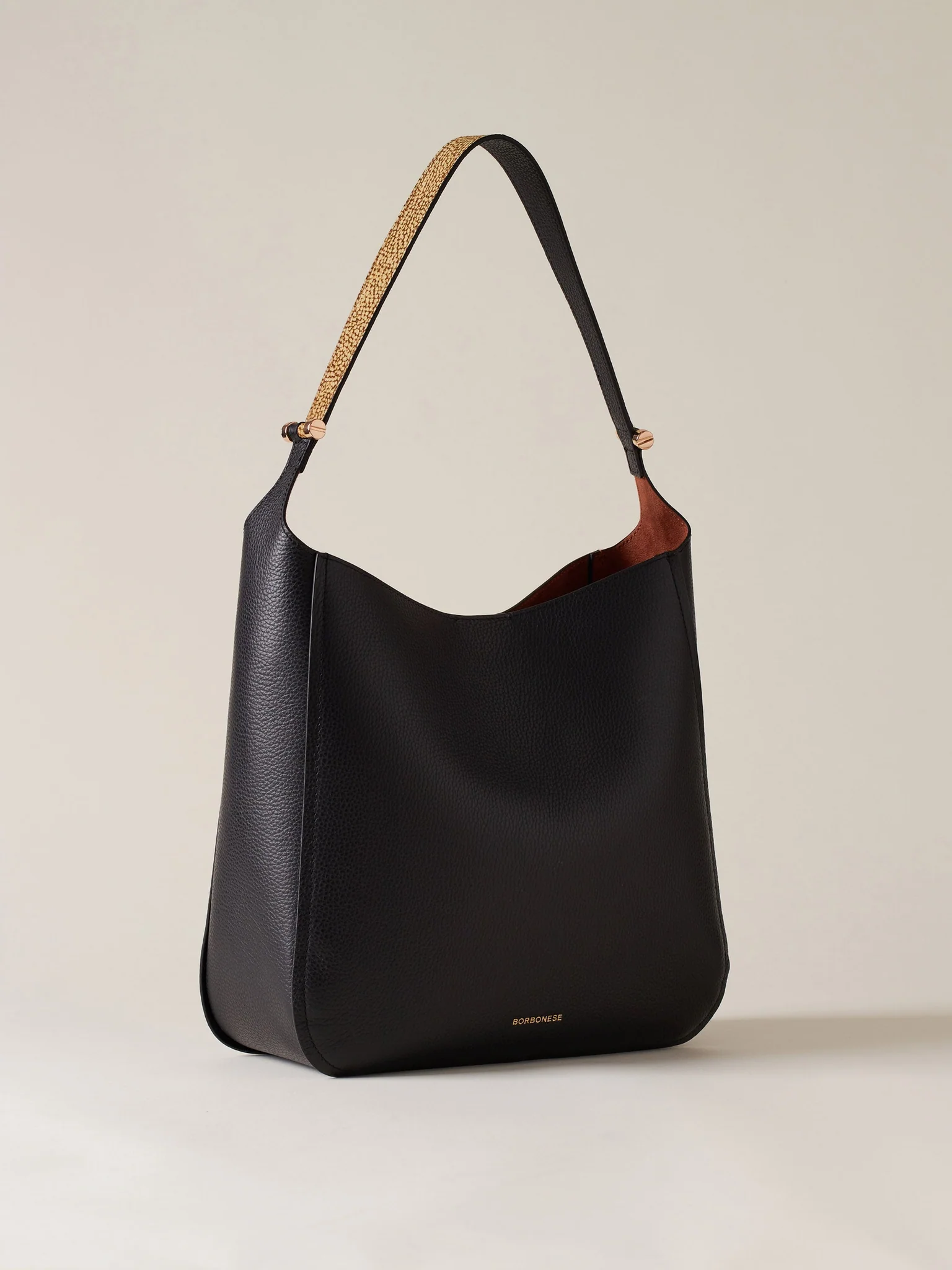 BORBONESE borsa a mano Bateau Medium in jet e pelle op naturale e nero