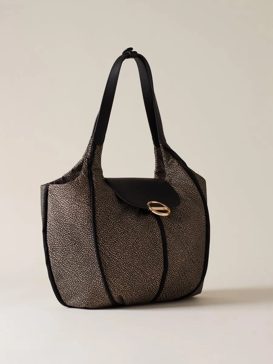 BORBONESE Cottage Borsa Shopping Medium Tess. Ricic. st Op/Vitello 91010123AJ0-X11 Op Naturale/Nero