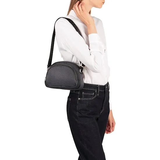 BORBONESE borsa a tracolla in jet medium Portrait op nero