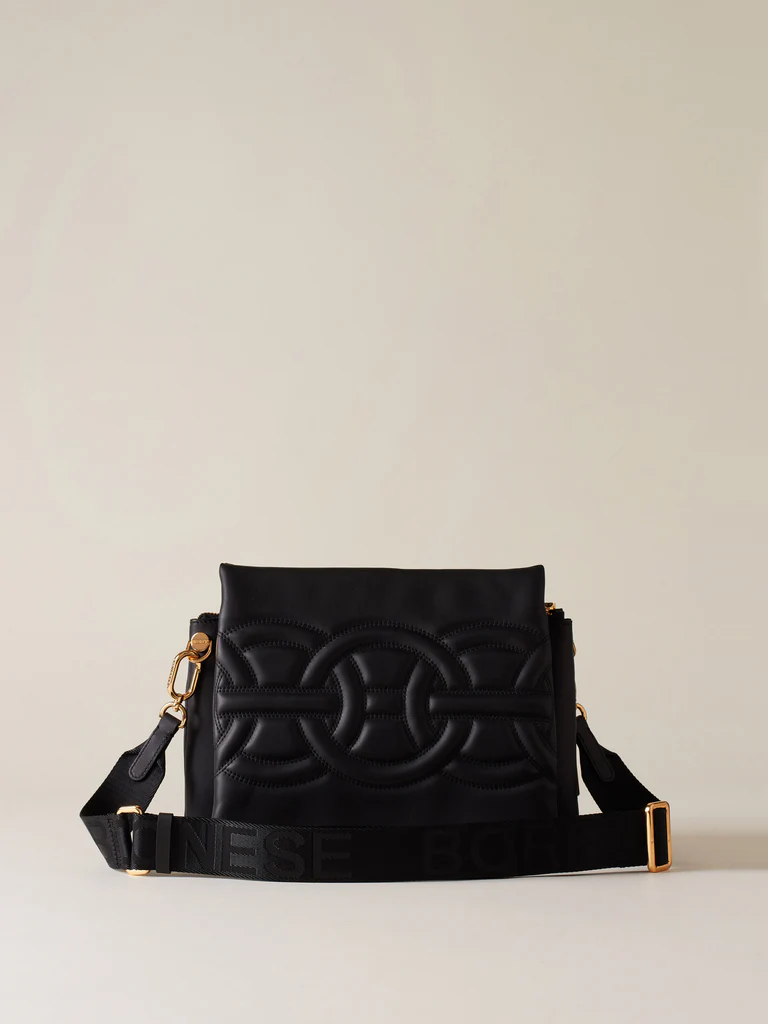 Borsa a spalla Rondò Trifolder di Borbonese dal design strutturato e dall’appeal contemporaneo. Puoi indossare questa borsa leggera e raffinata con qualsiasi tipo di outfit.