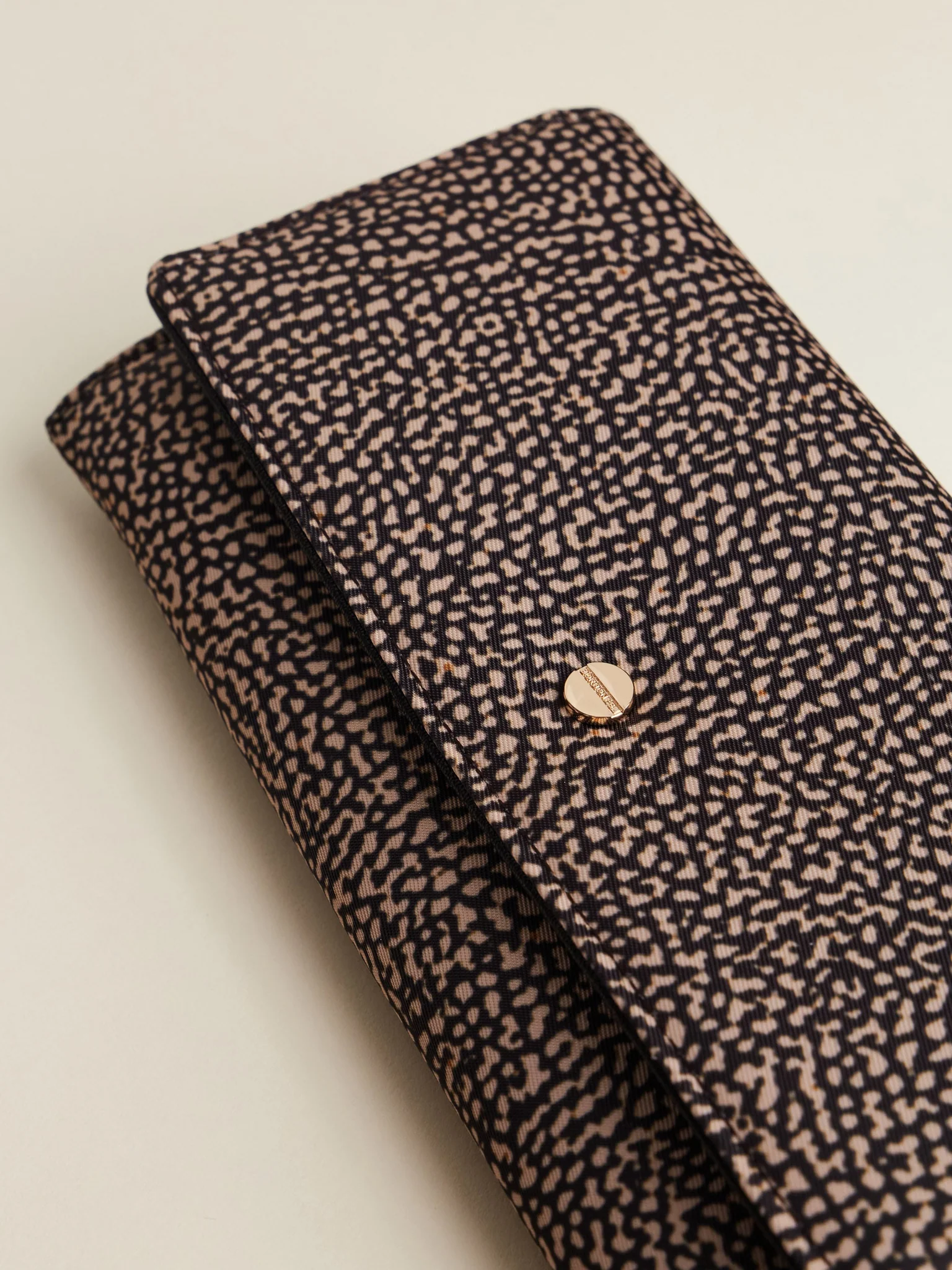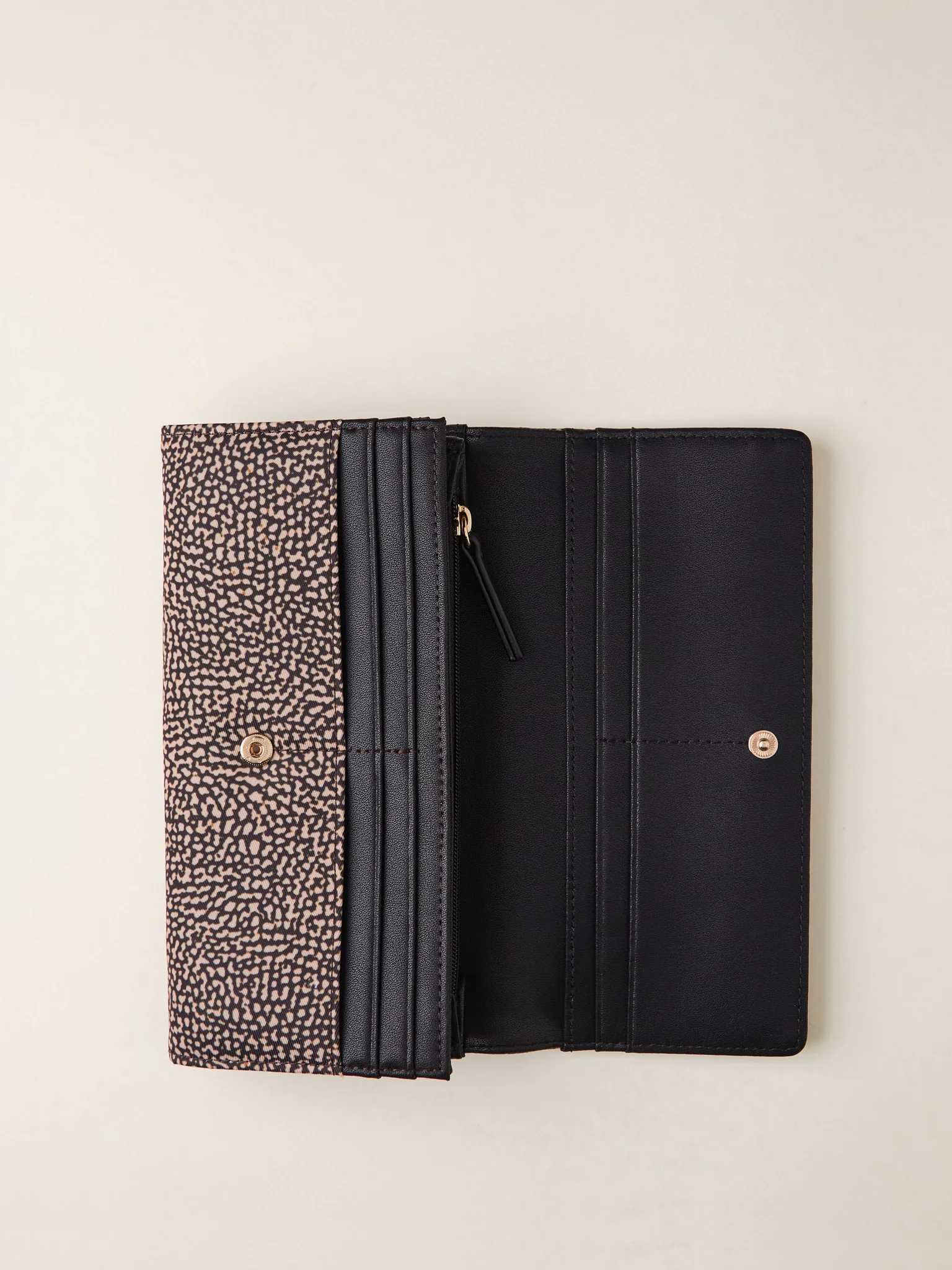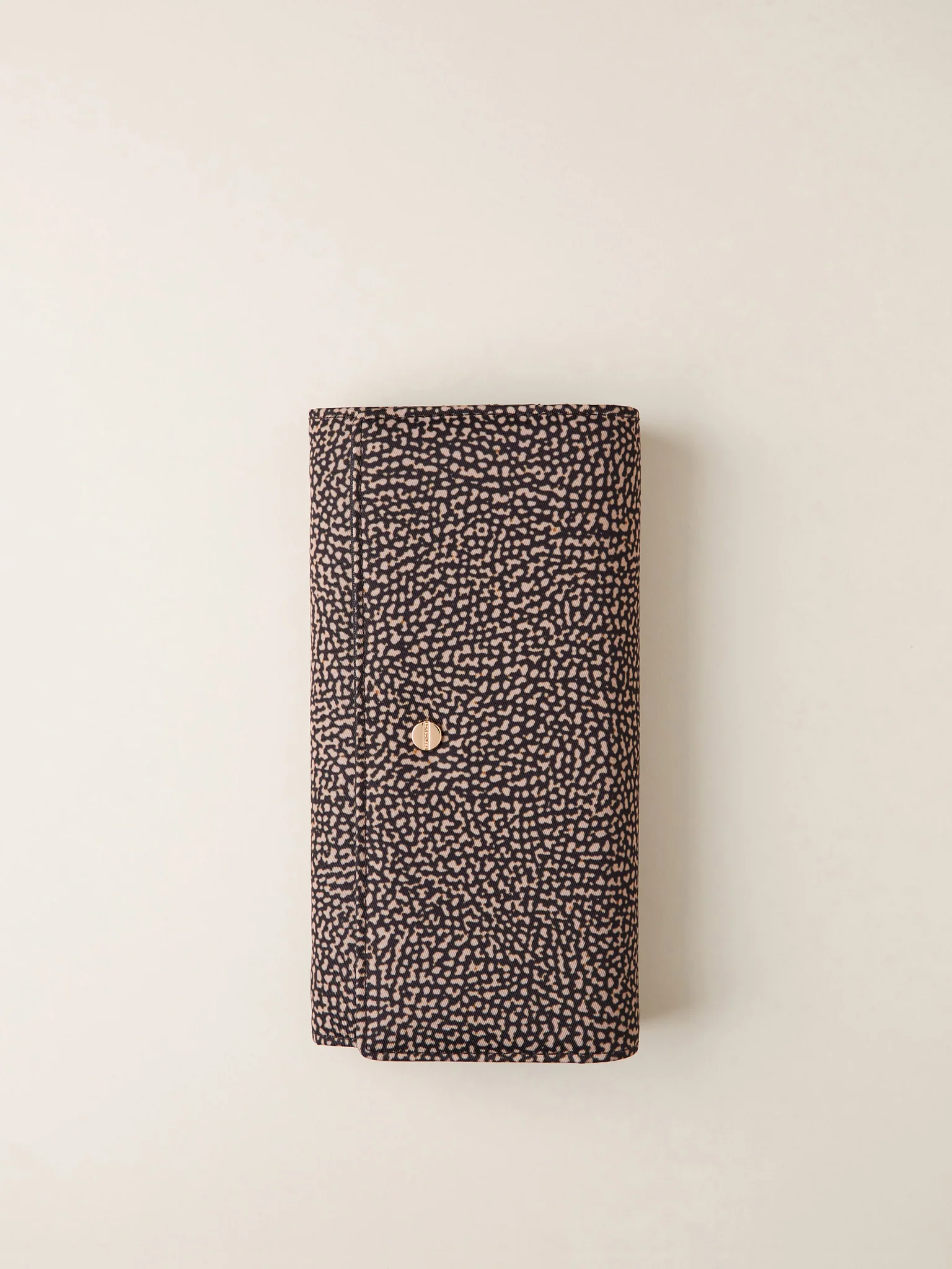 BORBONESE portafoglio large in jet e pelle con patta op naturale