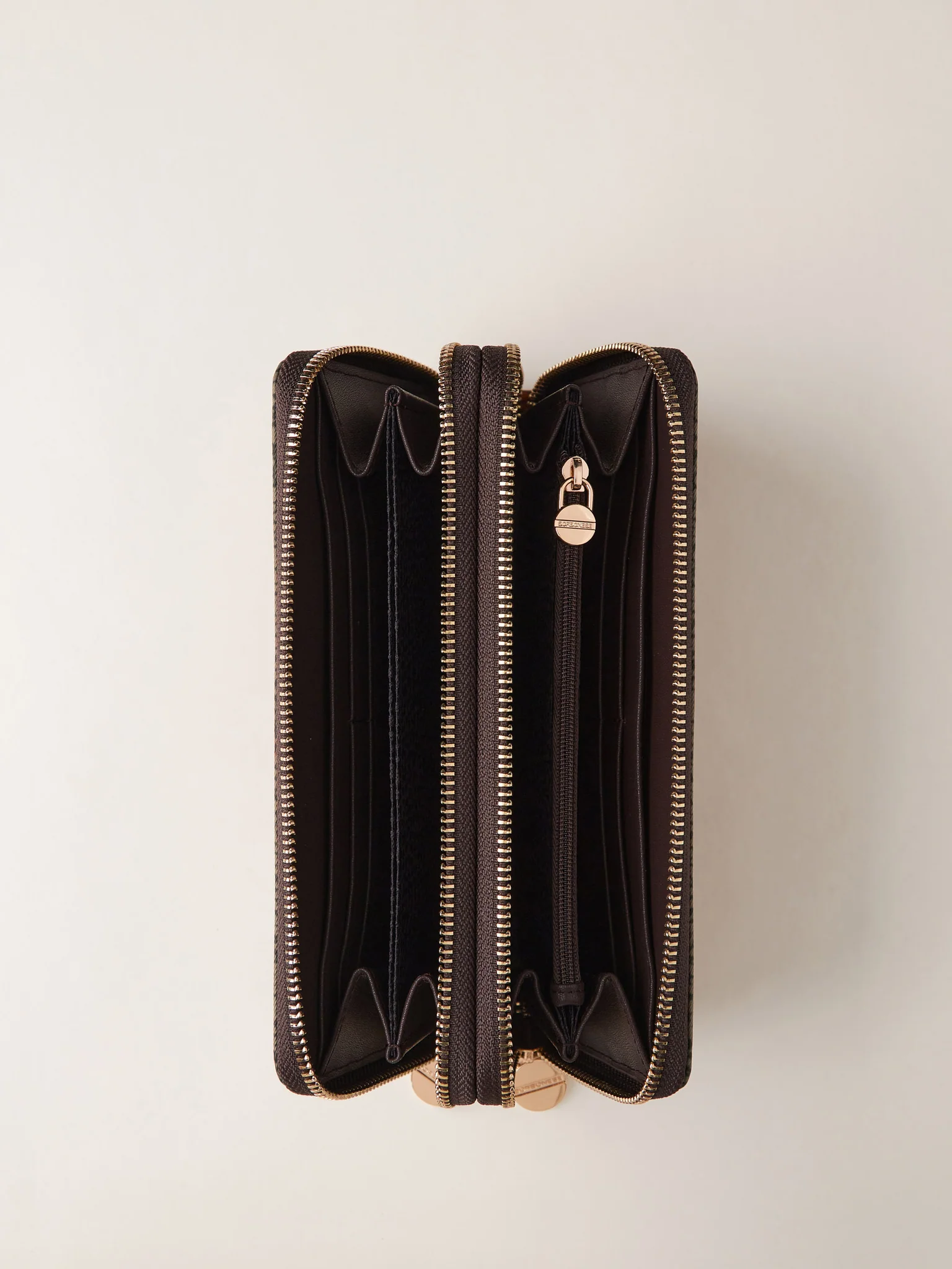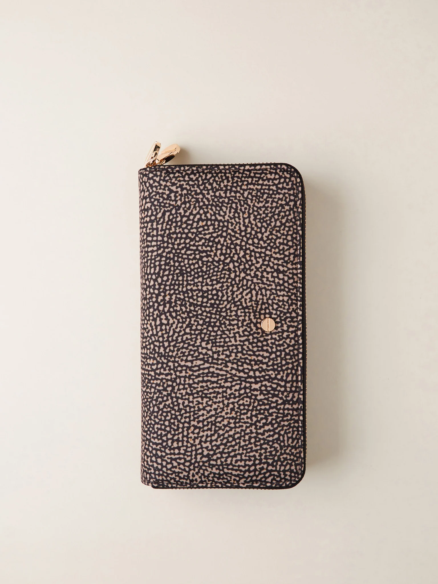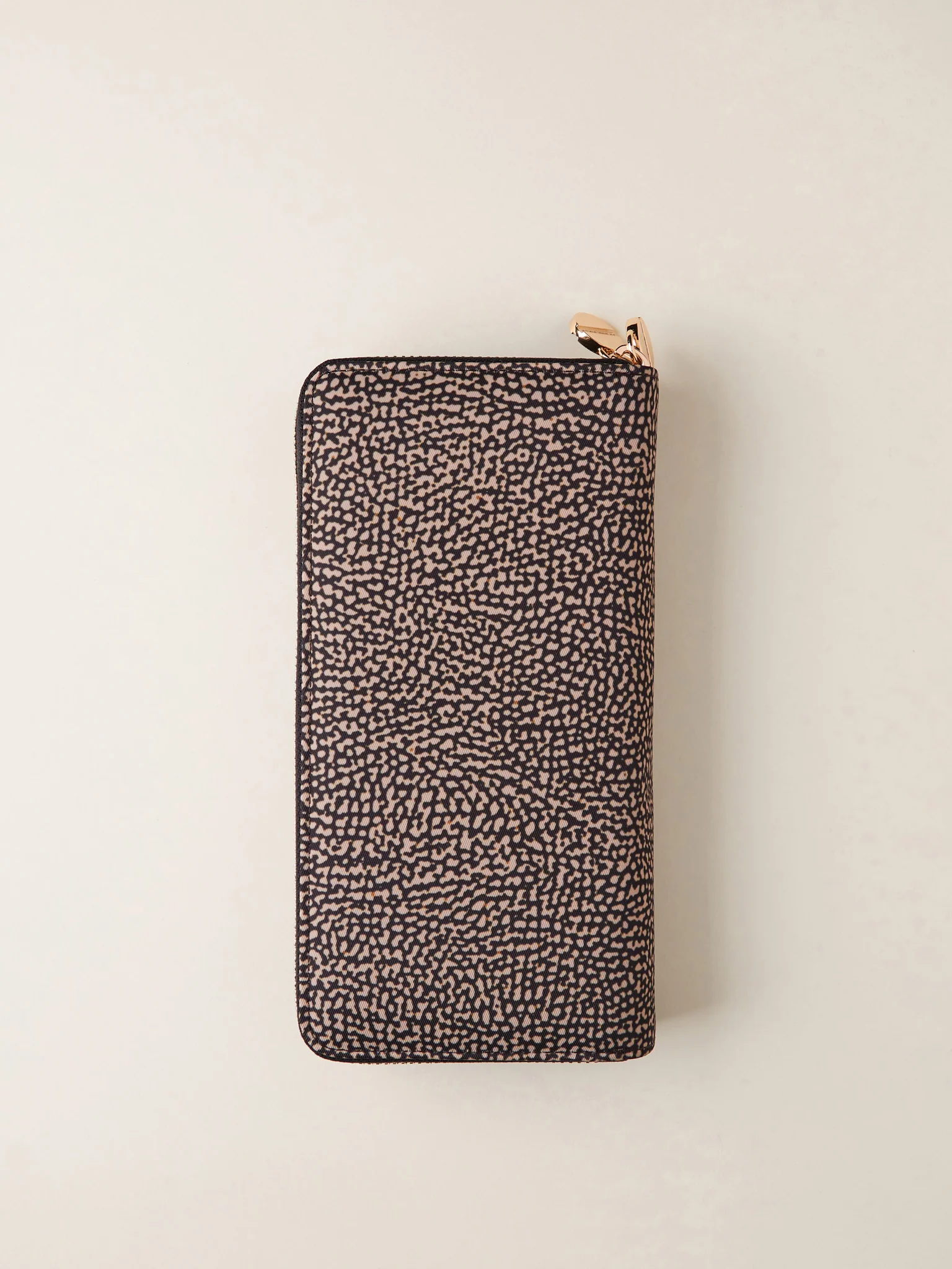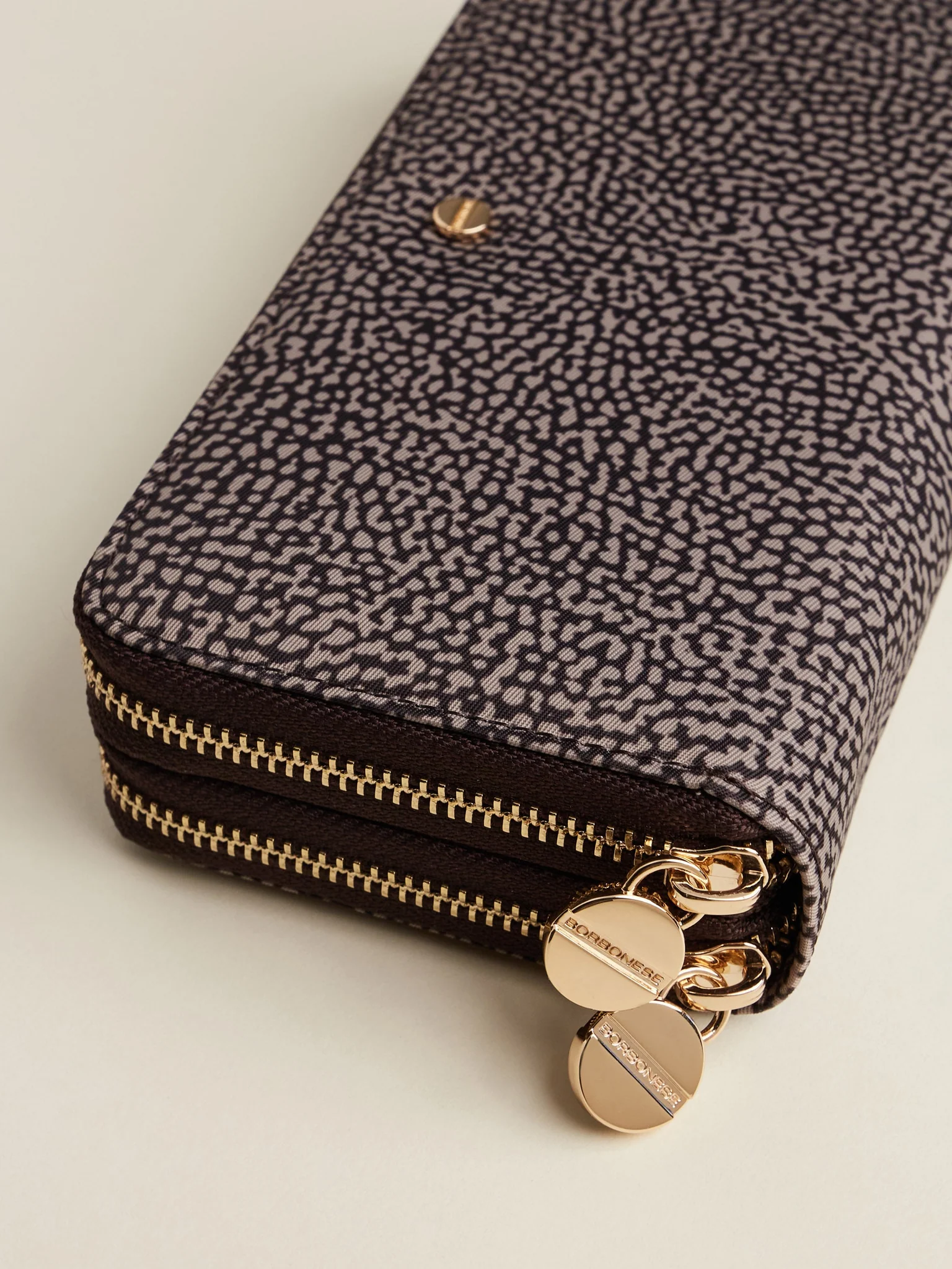 BORBONESE portafoglio large in jet e pelle doppia zip op naturale