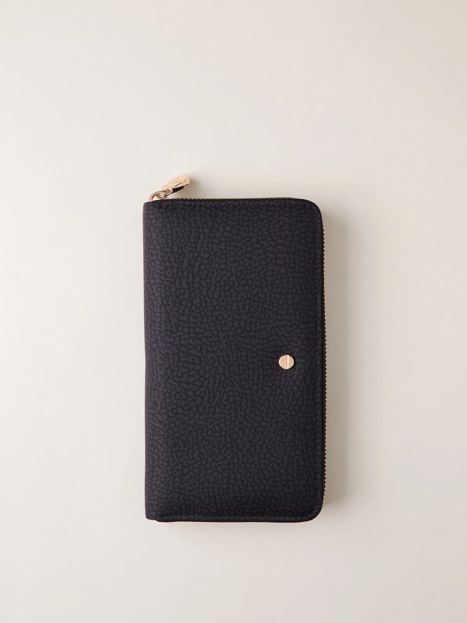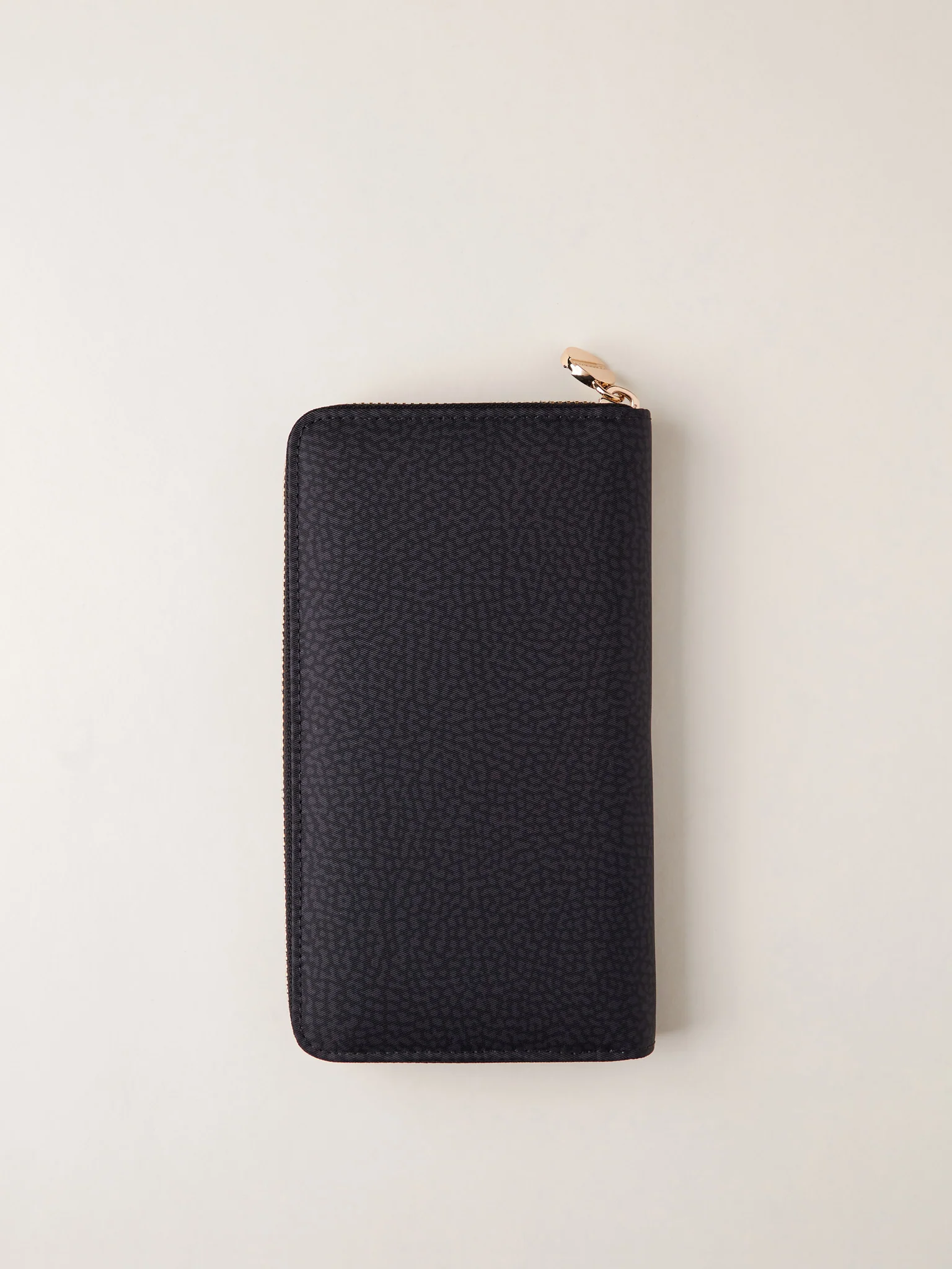 BORBONESE portafoglio large in jet e pelle zip op nero