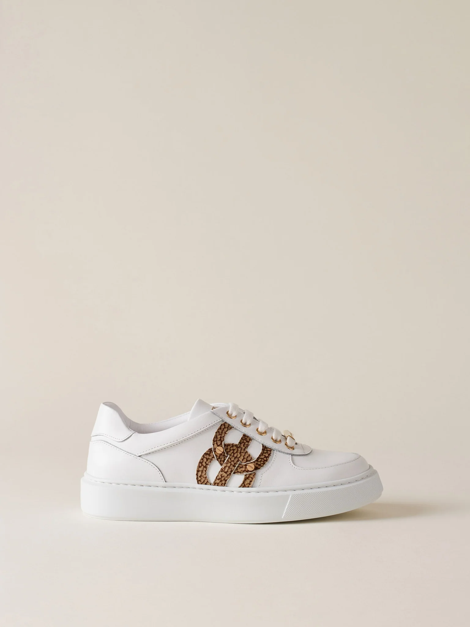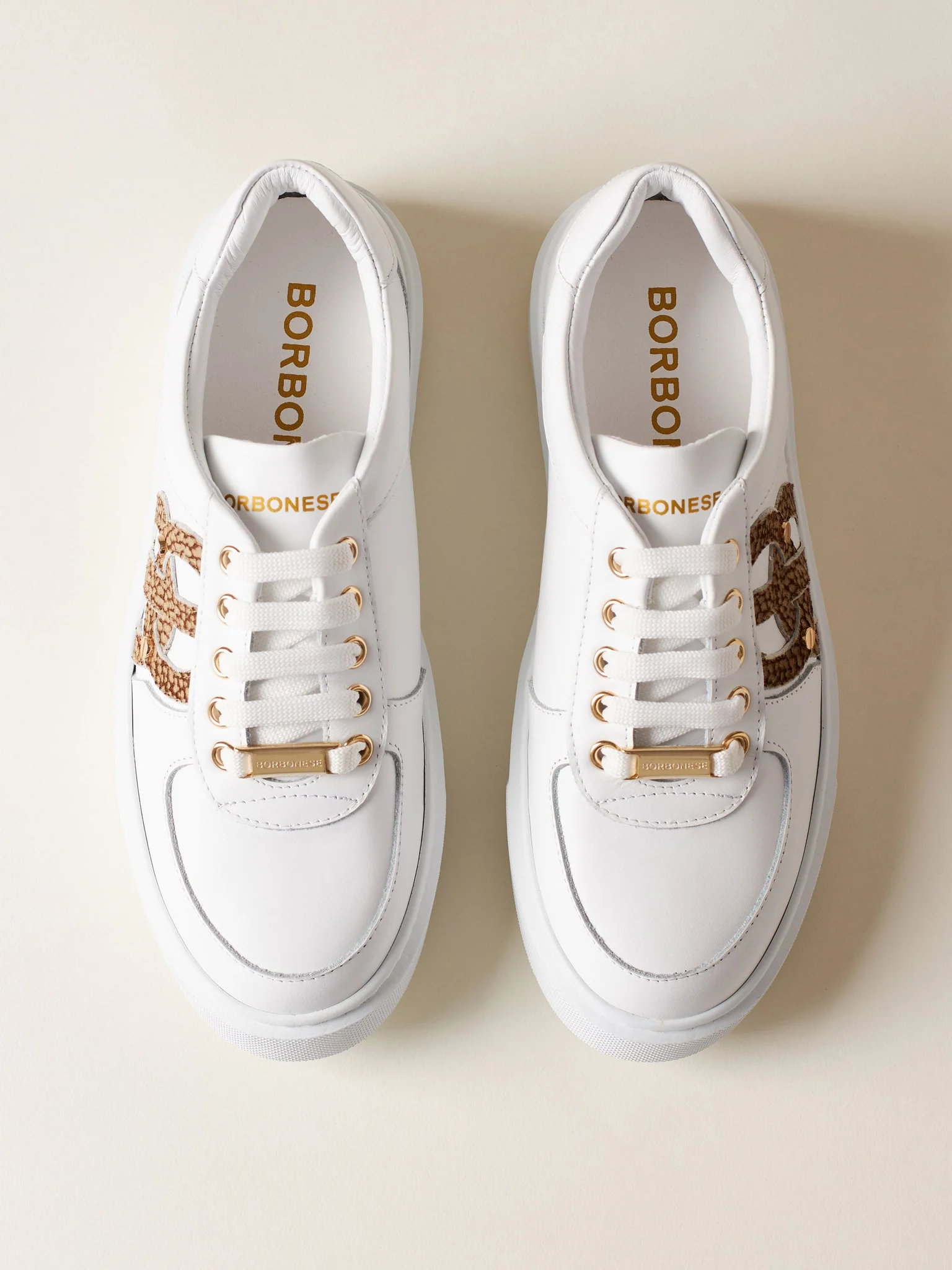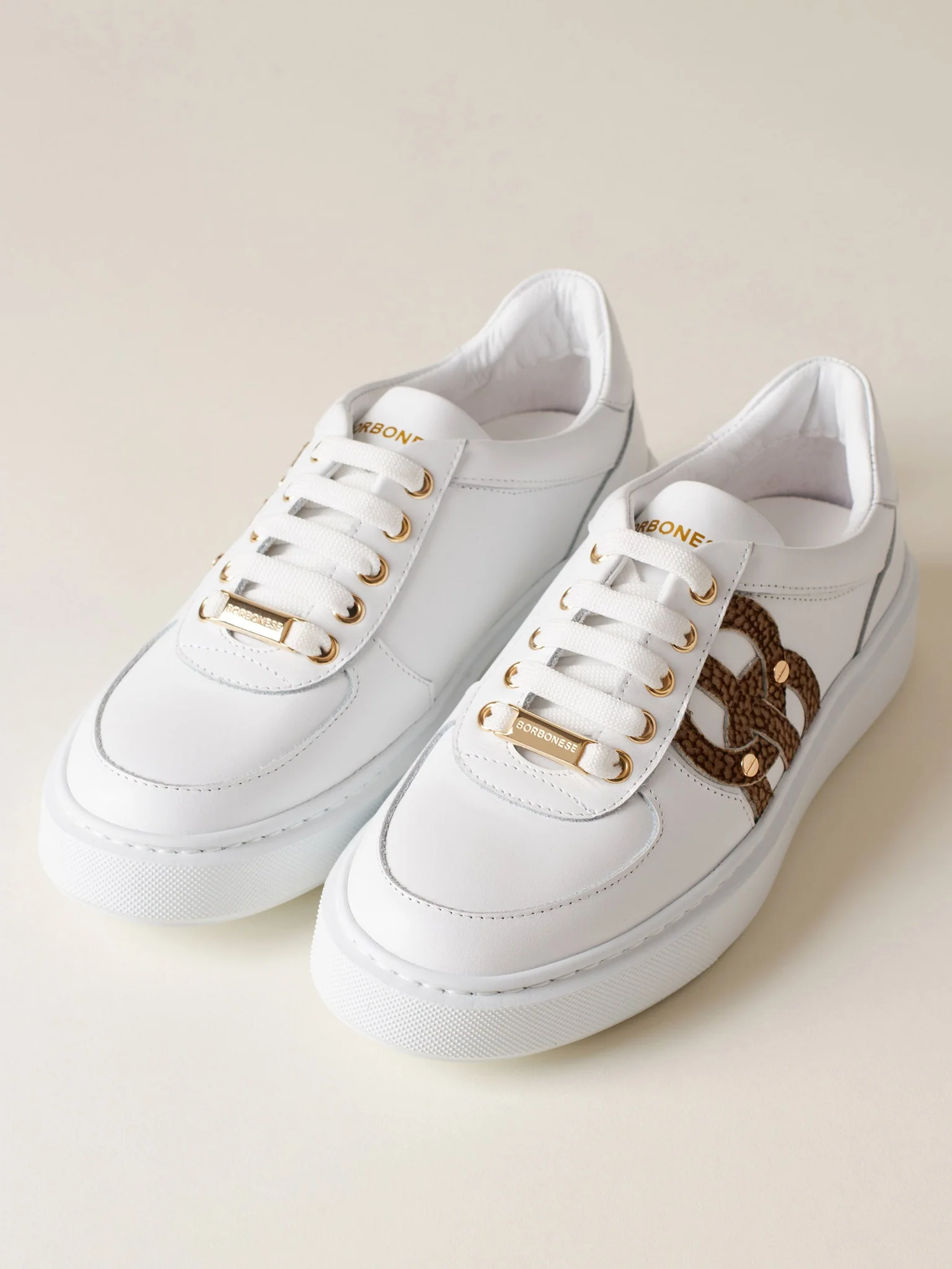 BORBONESE Sneakers di Pelle bianca logo camoscio