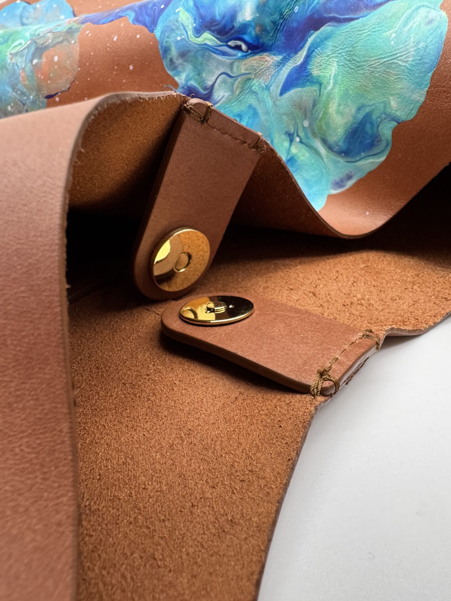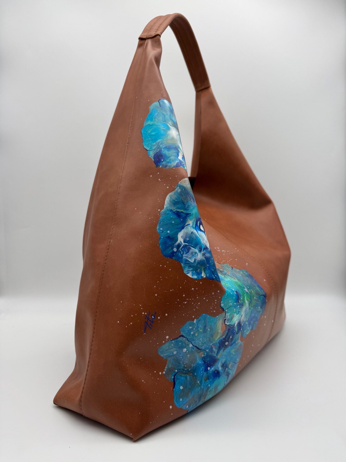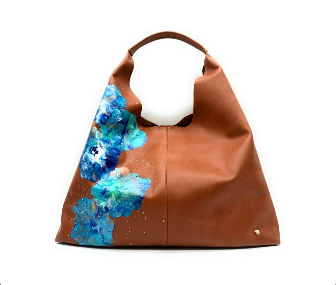 Borsa Hobo – Pelle liscia Cuoio – Fluid art Azzurro