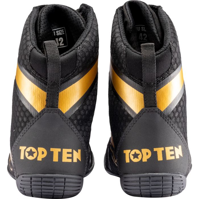 With their exceptional stability, the “Speedmaster” boxing boots make your appearance in the ring a safe affair. The shoe’s mix of firm and elastic materials makes it particularly light, so your legs don’t tire too quickly, even during frequent and intensive training sessions. An extra-long lacing system optimizes the fit of the TOP TEN “Speedmaster” for perfect wearing comfort. Additional advantages: flat sole with an adequate grip Lightweight upper material reinforced toe and heel area removable insole narrow cut