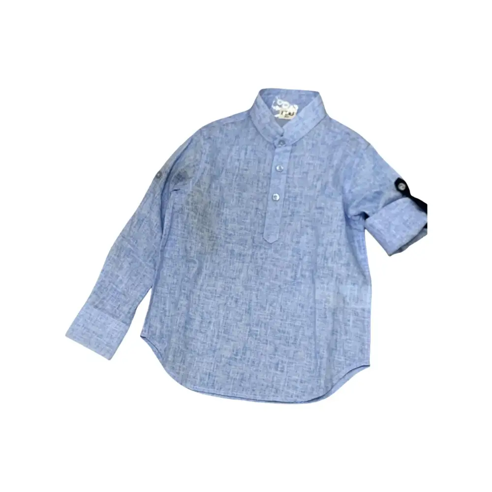 Il colore azzurro si abbina facilmente a tutti i pantaloni, dai jeans alle bermuda. La camicia coreana bambino azzurro risulta facile da lavare e mantiene la sua forma lavaggio dopo lavaggio.