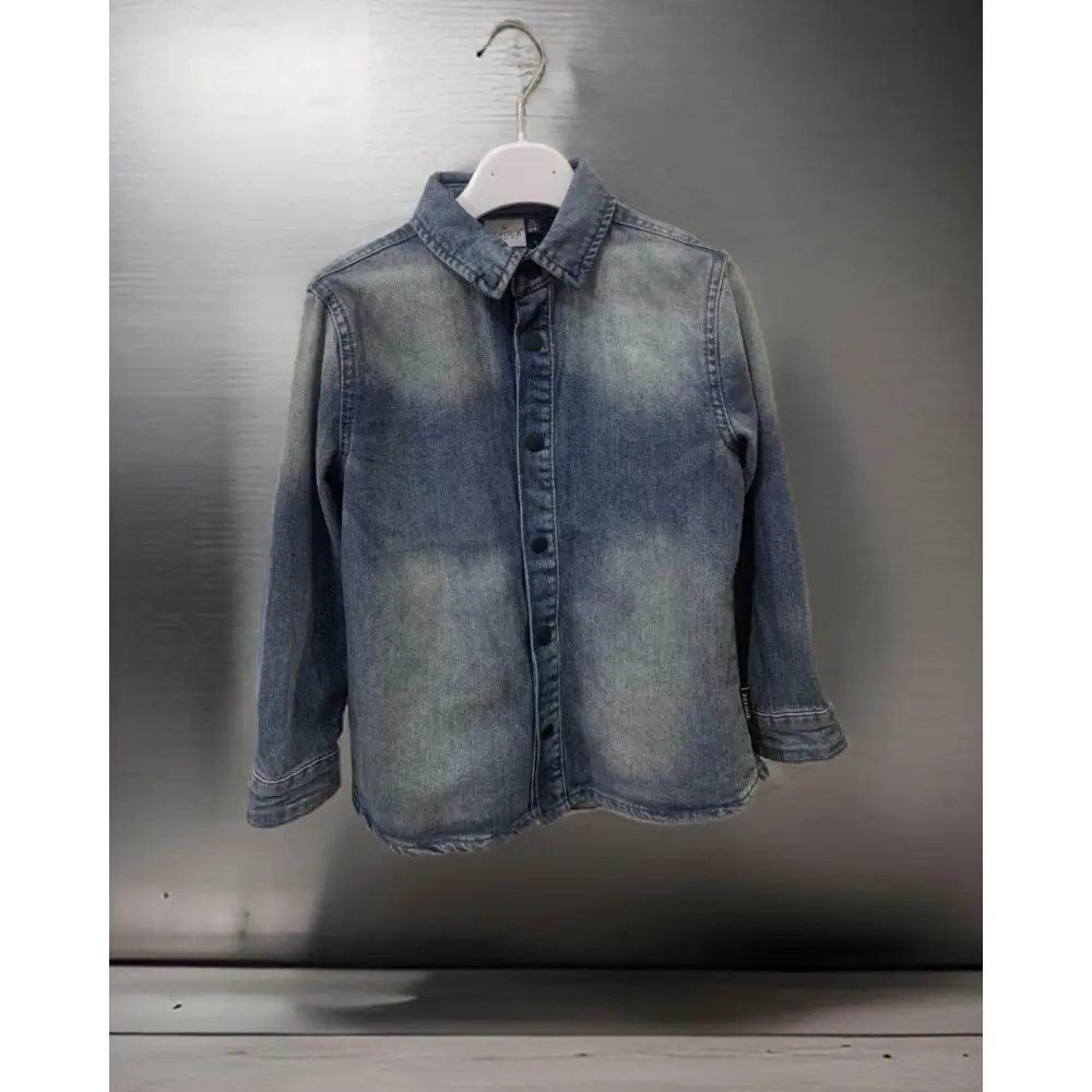 Questa *camicia denim* stone wash è perfetta per i ragazzi dagli 8 ai 16 anni. Un capo di *abbigliamento bambini* versatile e di tendenza, ideale per un look casual e confortevole. La chiusura con bottoni a pressione color nero metallo aggiunge un tocco moderno e resistente.