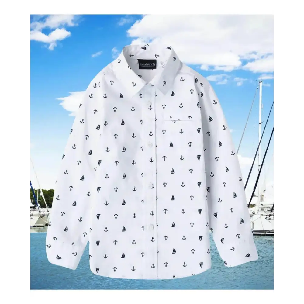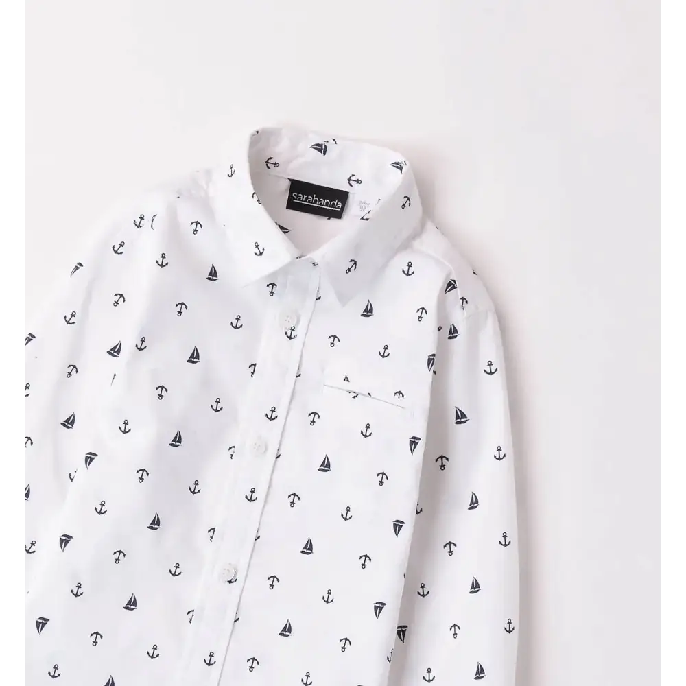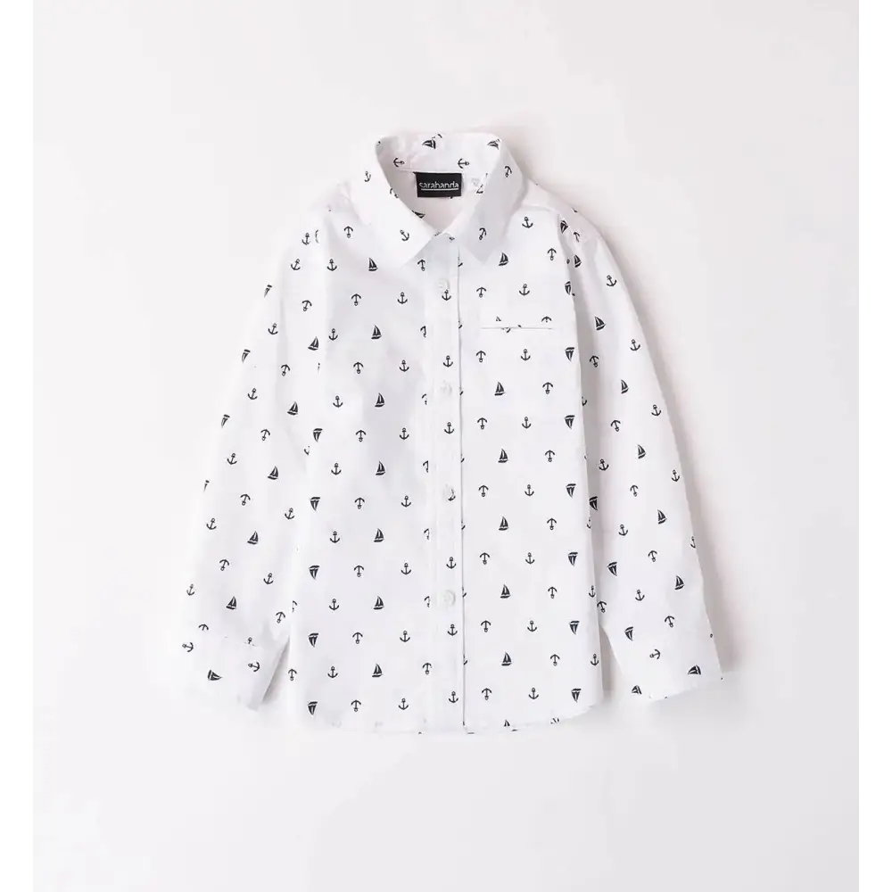 Con una camicia bambino fantasia Sarabanda, ogni uscita diventa speciale. Il modello bianco e blu dona freschezza al look. Comoda e stilosa, sarร tra i capi preferiti del guardaroba dei bambini.