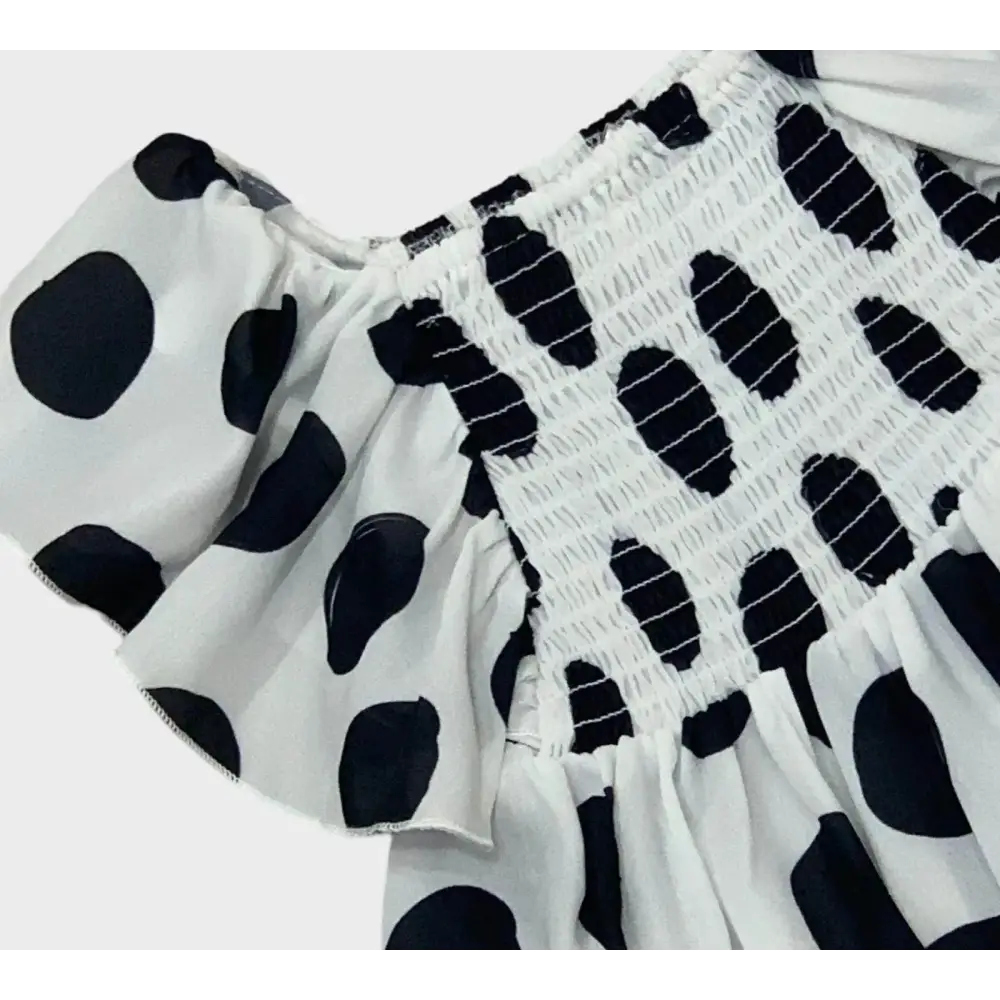 Il tessuto รจ leggero. Offre comfort per tutta la giornata. Le maniche ampie garantiscono libertร di movimento. Il dettaglio del punto smock sul corpetto dona una vestibilitร comoda. La CAMICIA POIS BIANCO NERO BAMBINA Y-CLU รจ ideale per uscite speciali e giornate di festa.