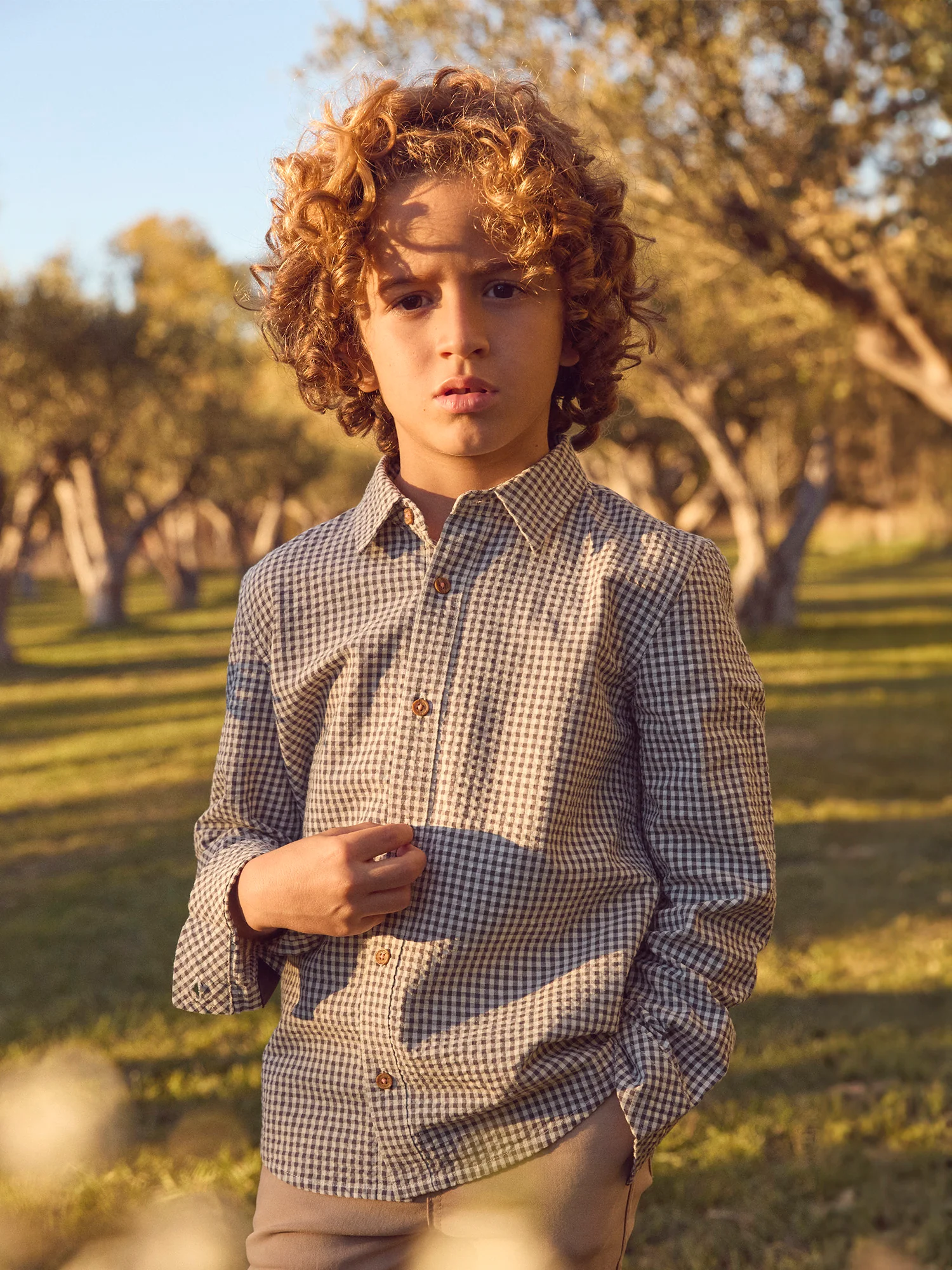 Progettato per il bambino elegante nella vita di tutti i giorni. Il suo materiale testurizzato offre comfort. I piccoli quadretti e l’etichetta conferiscono uno stile classico rivisitato.