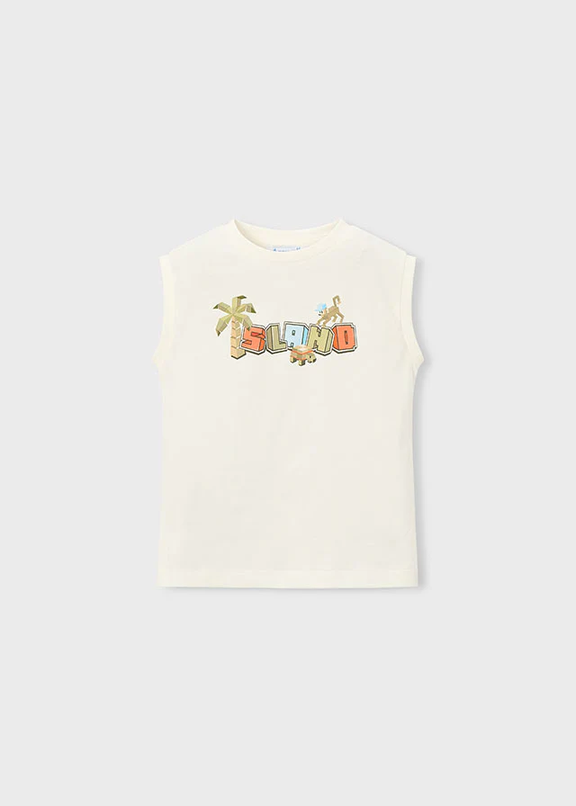 Canotta leggera in cotone per bambino, firmata Mayoral. La stampa island cattura lo spirito estivo con dettagli grafici vivaci e moderni. Perfetta per le giornate calde, offre comfort e libertร di movimento. Ideale da indossare da sola o in abbinamento con shorts e pantaloncini. Un essenziale versatile per il guardaroba estivo del tuo bambino. Art. 3085-081
