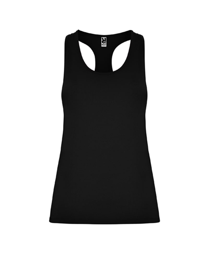 Canotta Fitness Aida Roly nero – Tessuto poliestere, tatto cotone. Adattabile al corpo. Taglio aderente.
