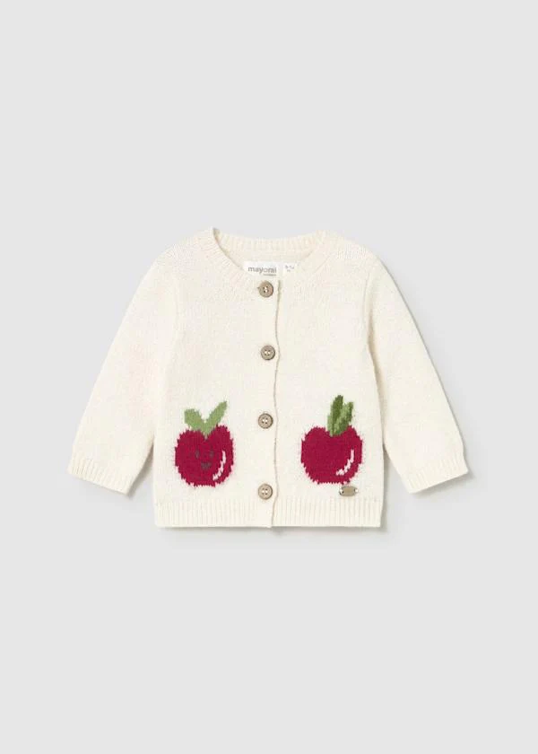 Cardigan manica lunga per neonato. Colletto con onde. Chiusura con bottoni nella parte anteriore. Confezione in diversi tessuti per ottenere un design unico e speciale. Elementi decorativi: dettagli a costine..