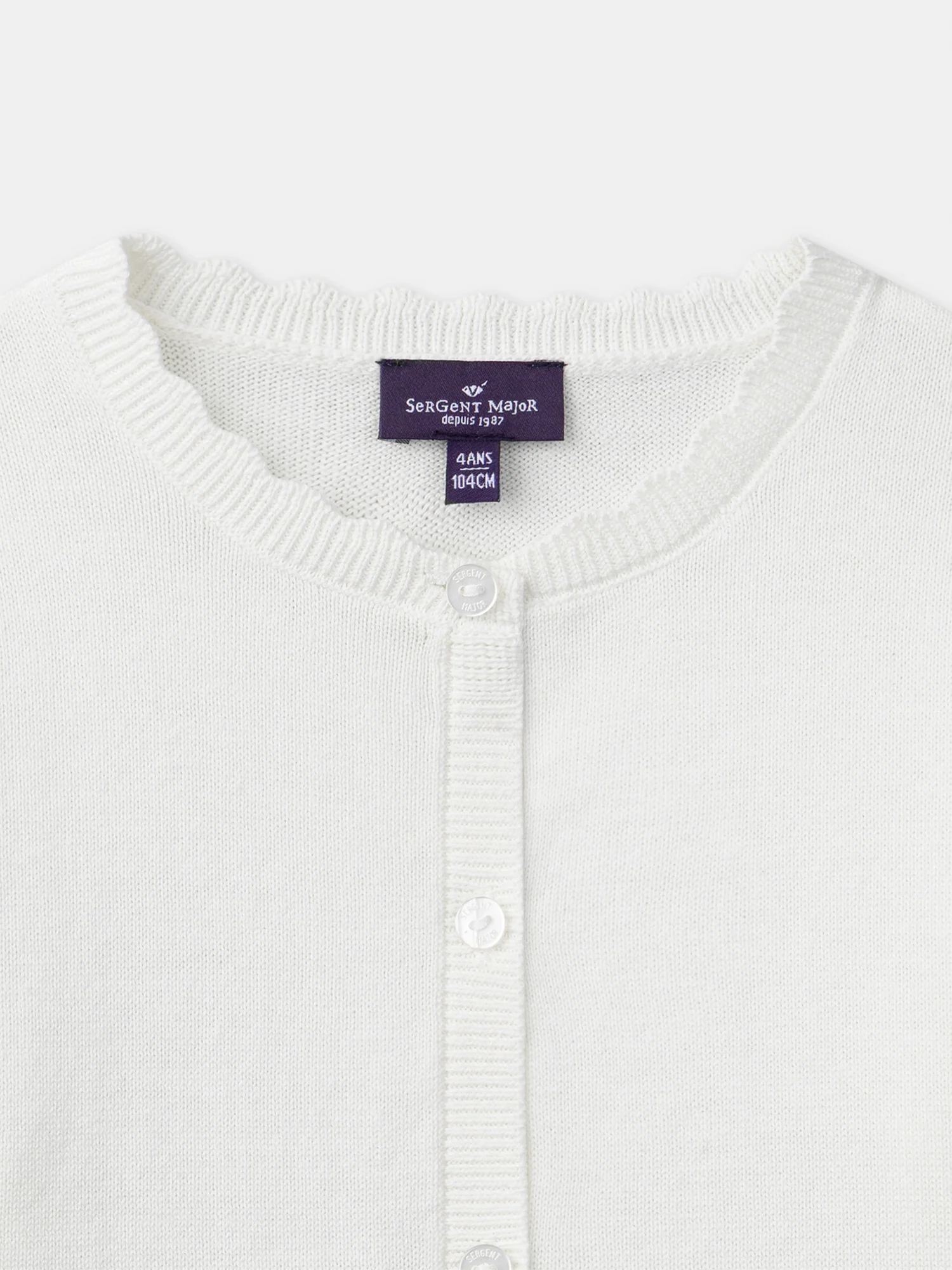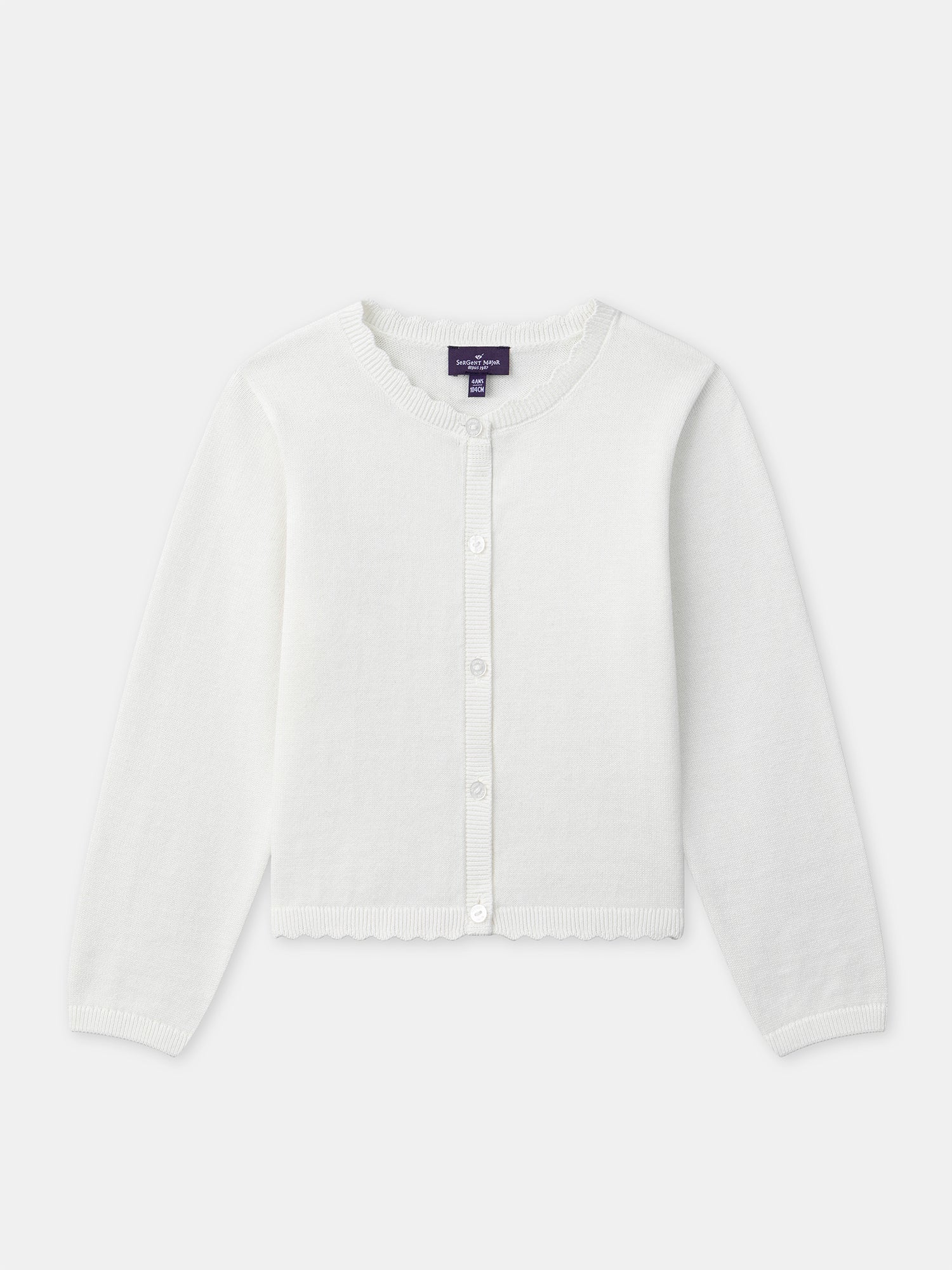 Ideale per una ragazza calma e sognante in mezza stagione. Il leggero filato offre comfort durevole. I bordi a conchiglia evidenziano uno stile delicato. Finiture a conchiglia al colletto e all’orlo Apertura con bottoni sul davanti Questo prodotto appartiene alla Collezione Essenziali: Mix Major.