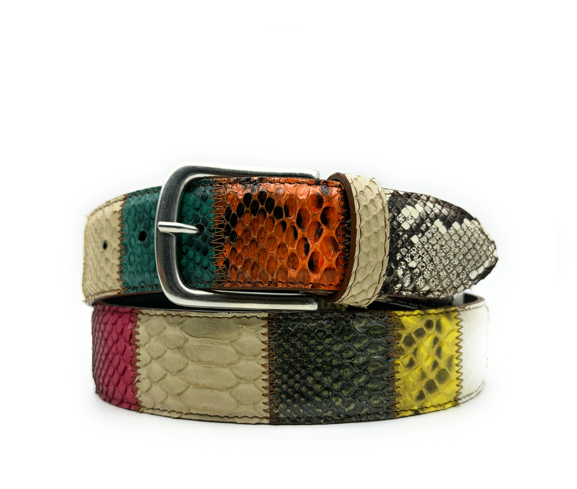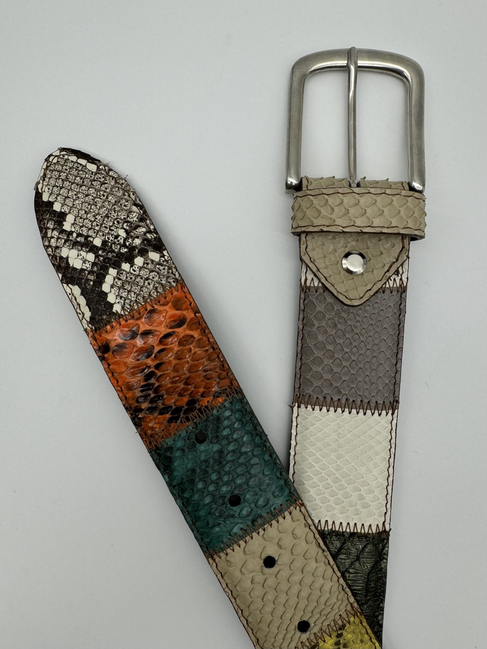 Cintura – Alta 4 cm – Vero Pitone – Patchwork verticale – Colori chiari