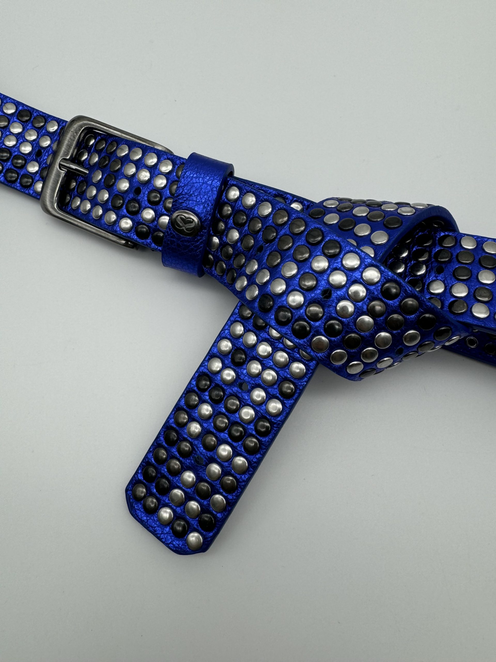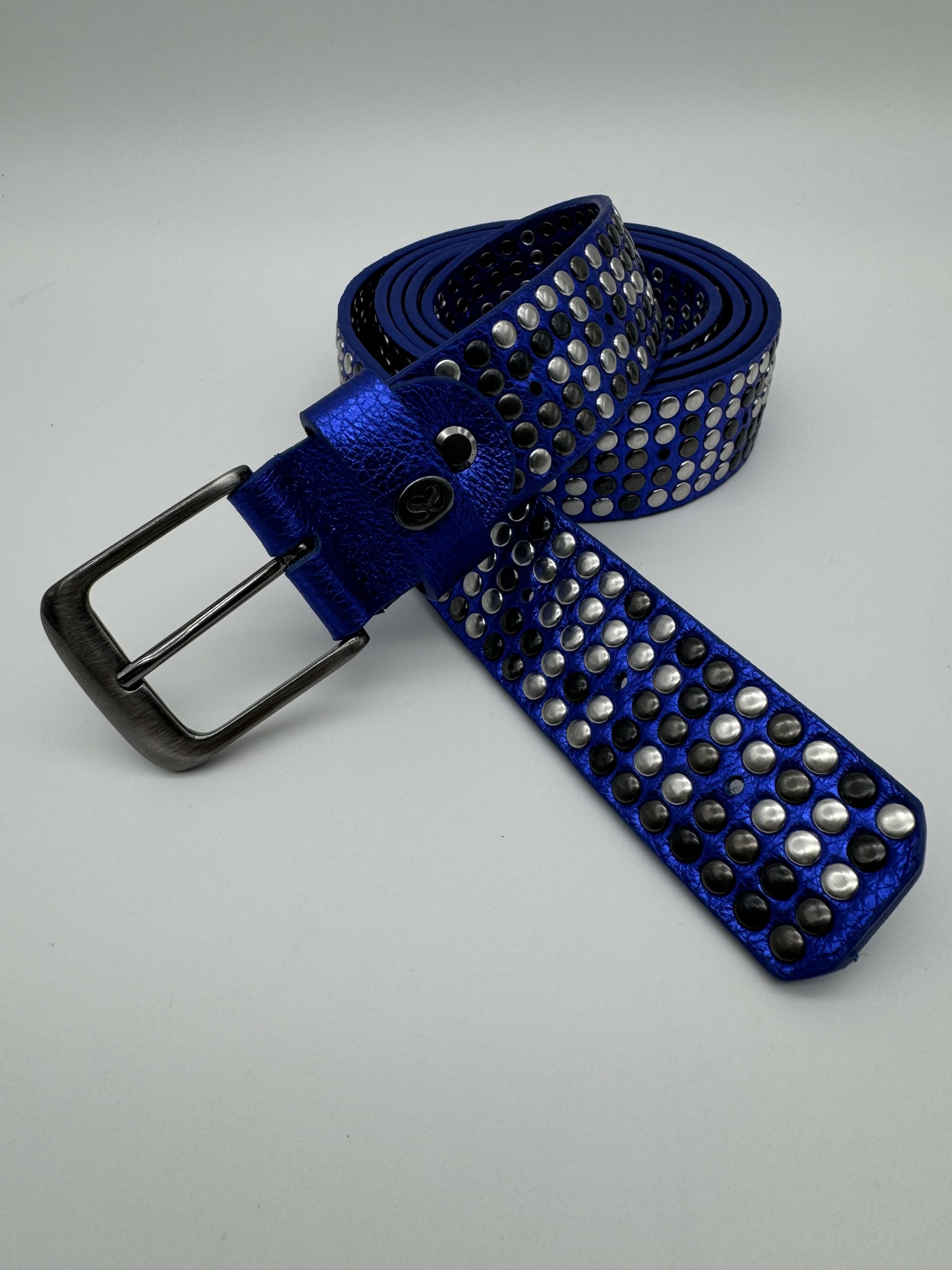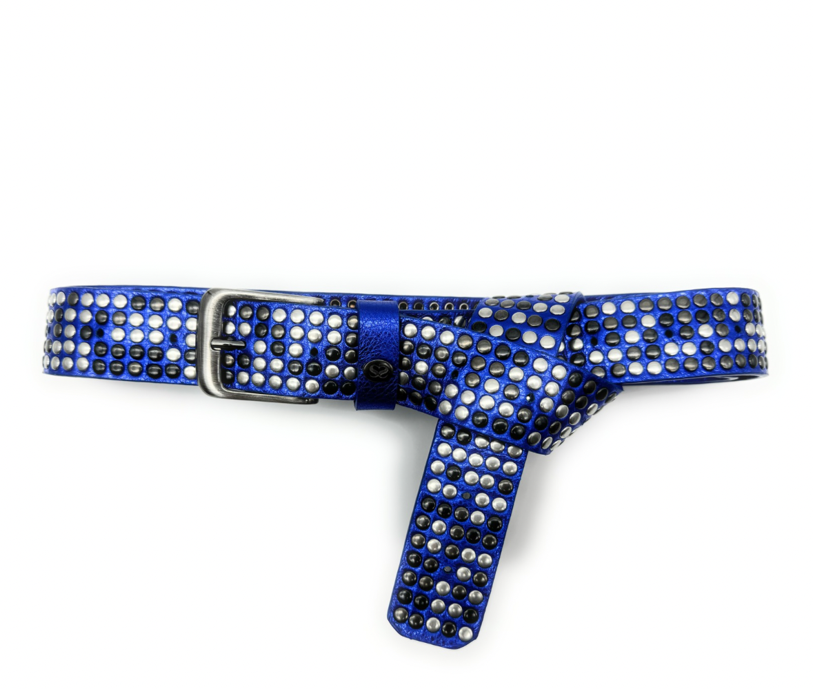 Cintura da Annodare – Alta 3,5 cm – Pelle Blu Elettrico – 1000 e più Borchie Argento, Canna Fucile