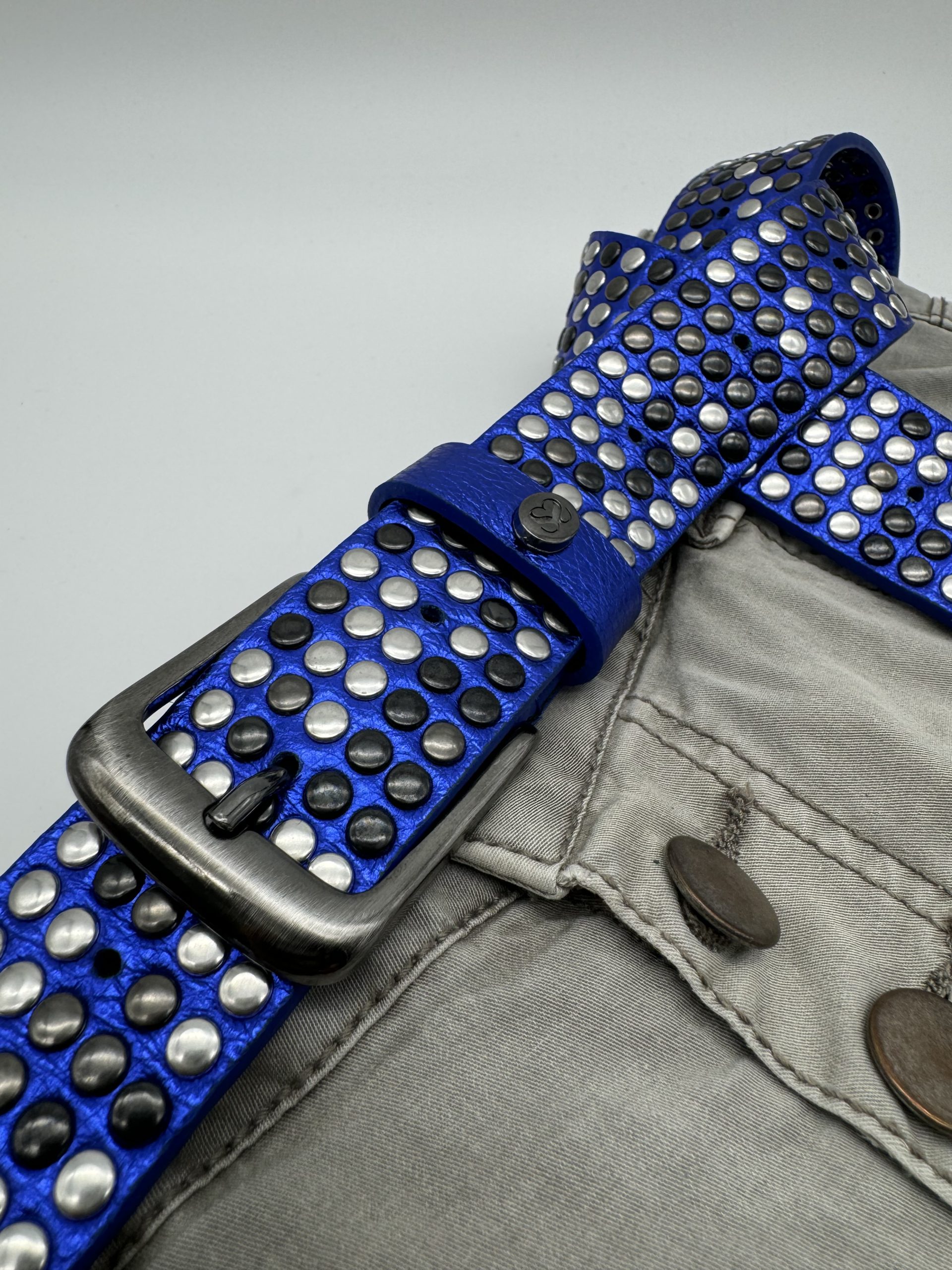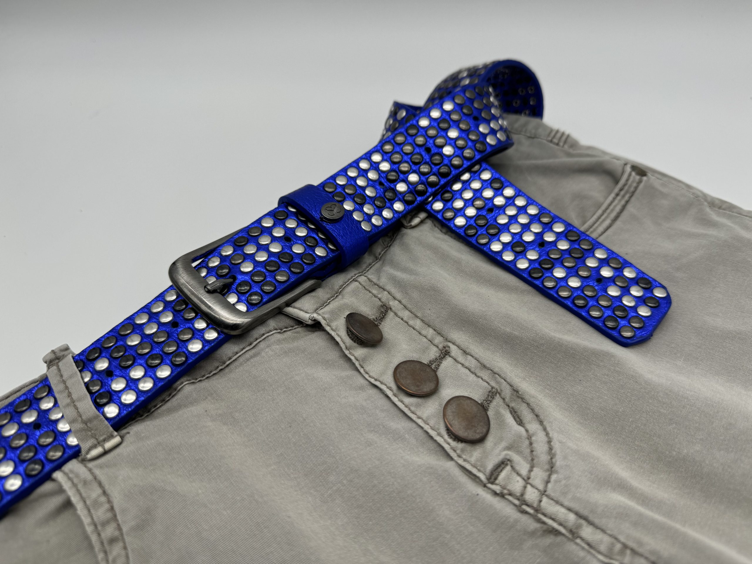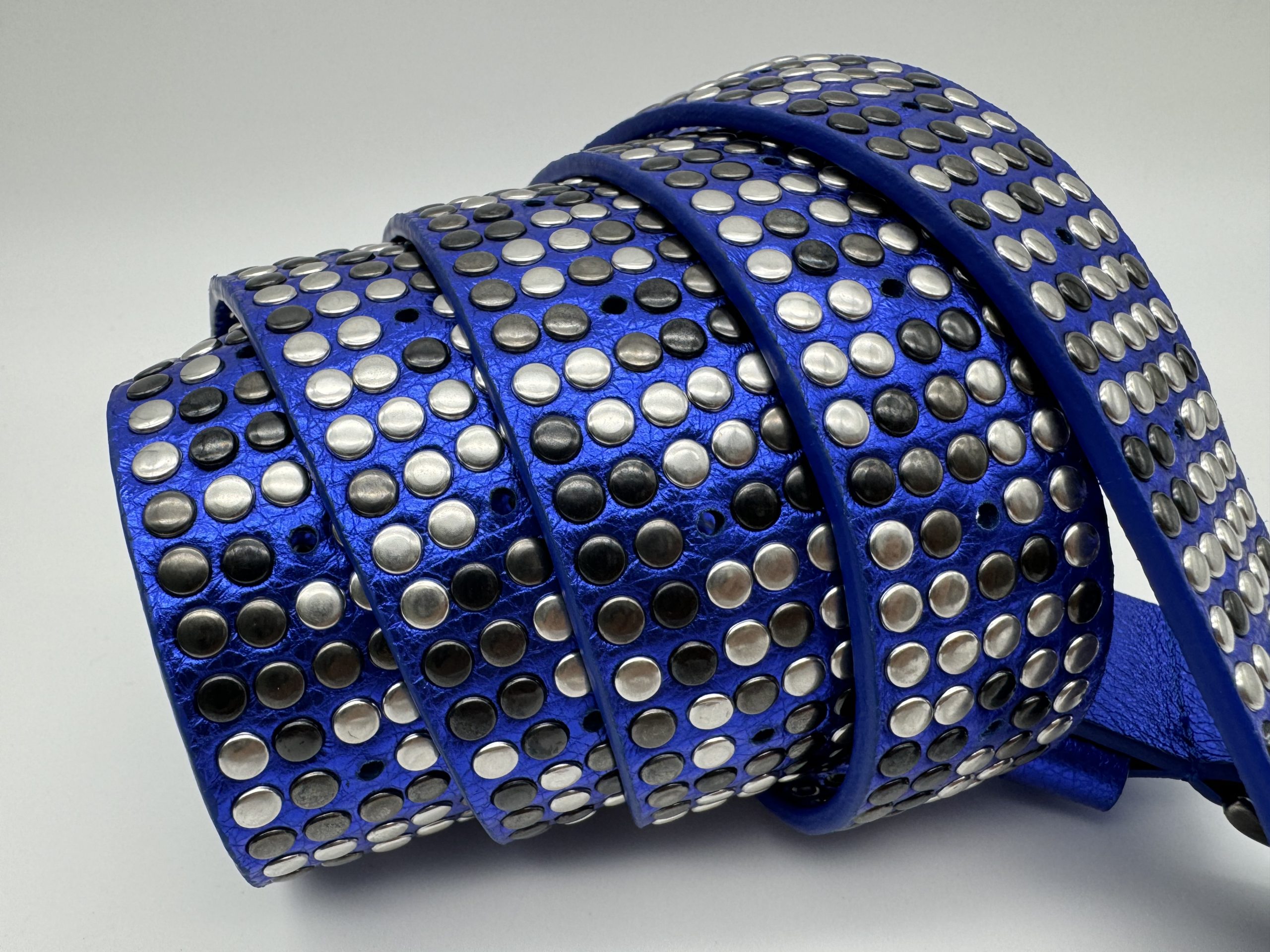 Cintura da Annodare – Alta 3,5 cm – Pelle Blu Elettrico – 1000 e più Borchie Argento, Canna Fucile