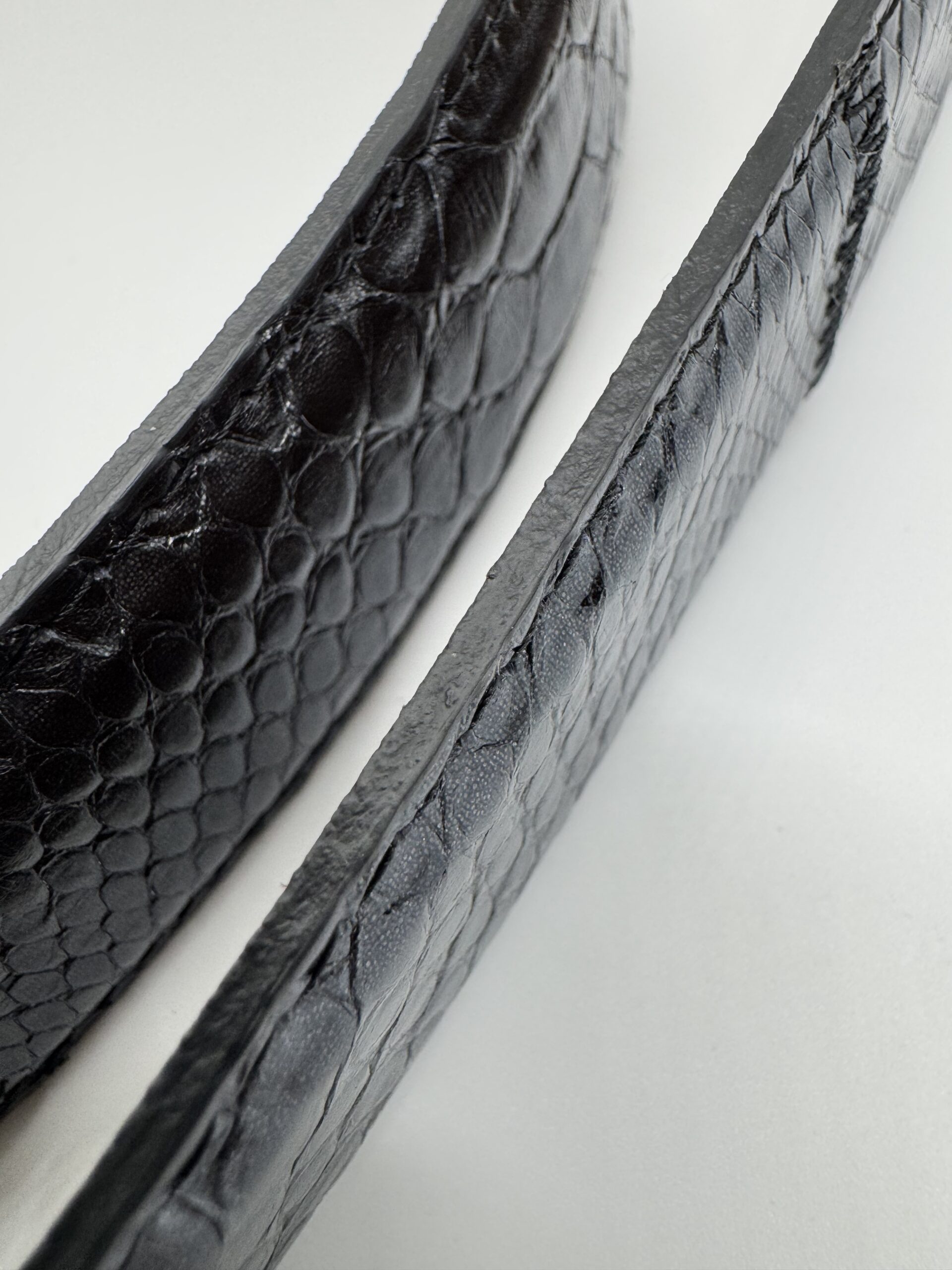 Cintura alta 4 cm in vero pitone patchwork nero. Misura una tua cintura oppure consulta la guida