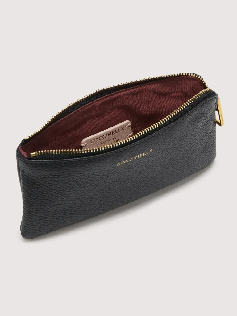 La busta della linea Coccinelle Alias può essere utilizzata per organizzare al meglio la propria borsa, diventando così l’accessorio ideale da avere sempre con sé. Questo modello è realizzato in pelle lavorata tramite specifici macchinari e poi bottalata al fine di mantenerne la morbidezza. È una pelle molto resistente che si presta a una facile pulizia, ideale per un uso quotidiano.