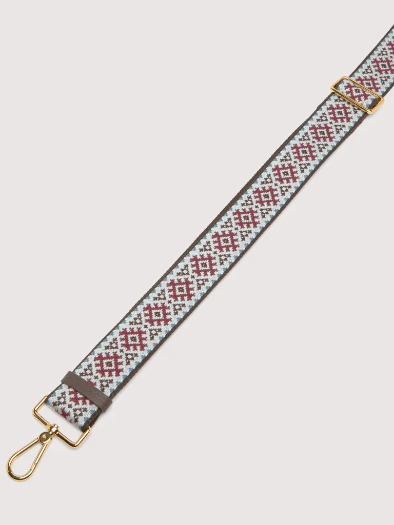 Tracolla in tessuto con motivo geometrico. Regolabile con anello scorrevole. Perfetta per personalizzare la propria borsa.