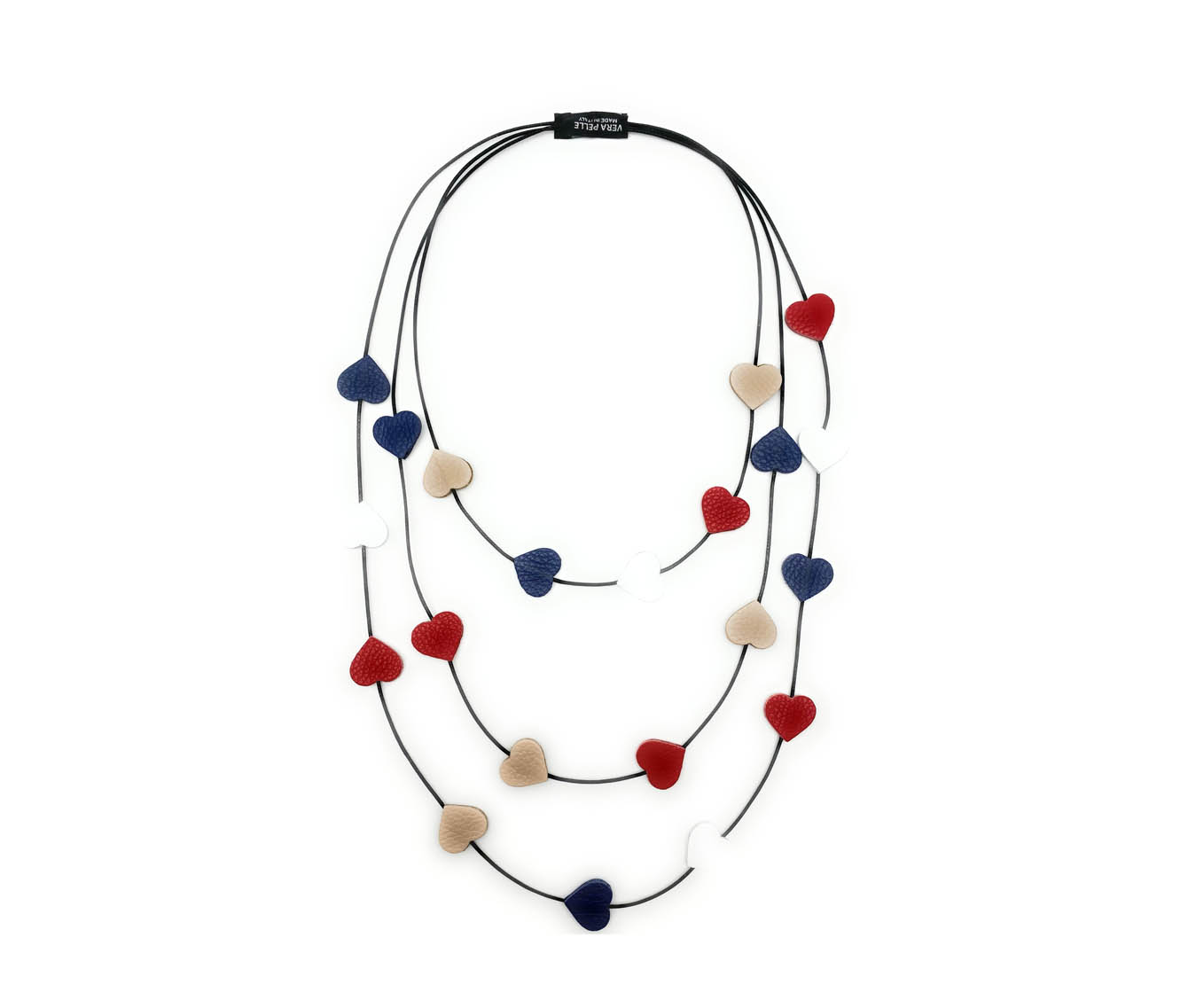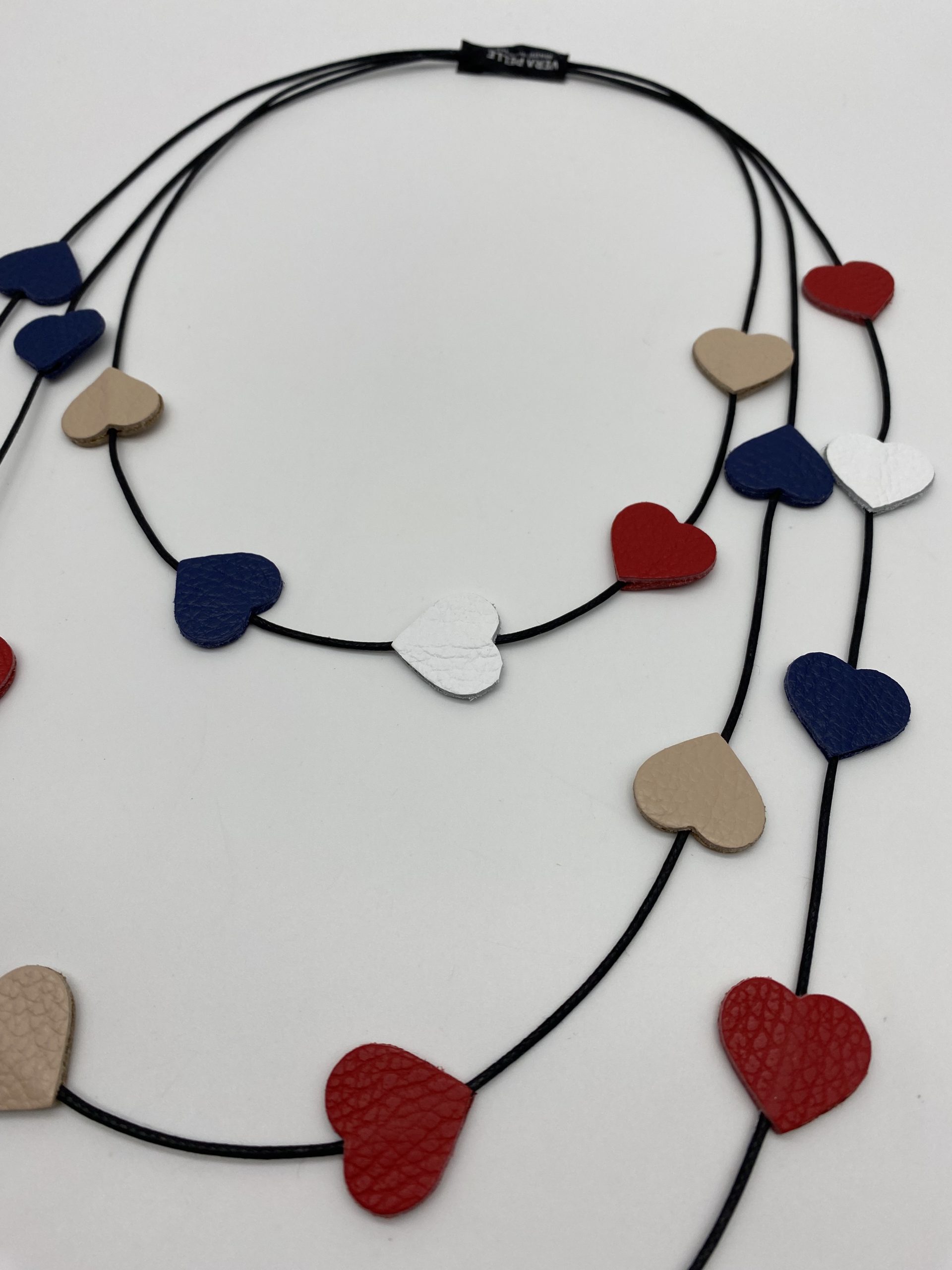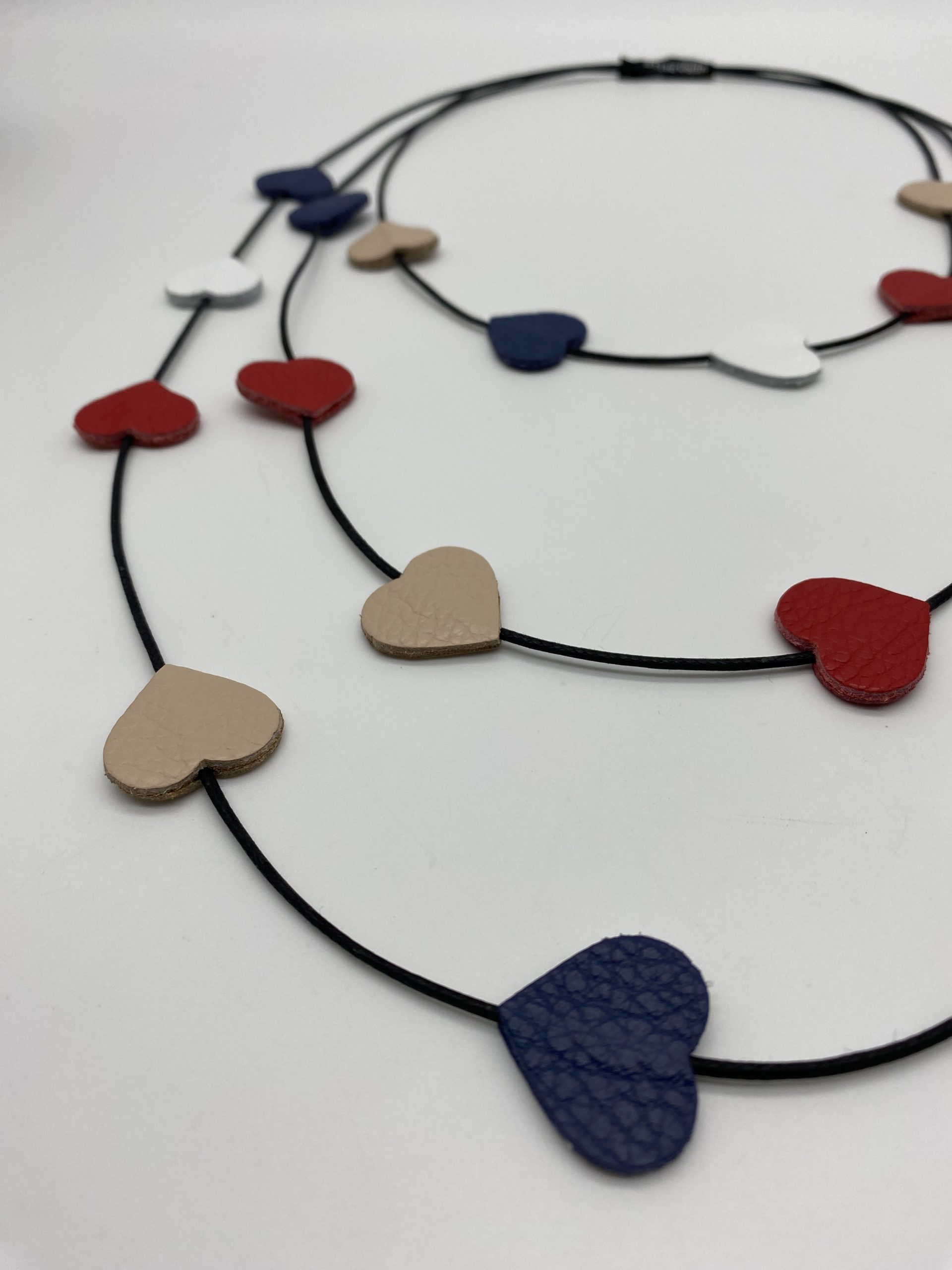 Questa collana cuore è formata da un’unica corda divisa in 3 giri, regolabili tramite scorrimento.