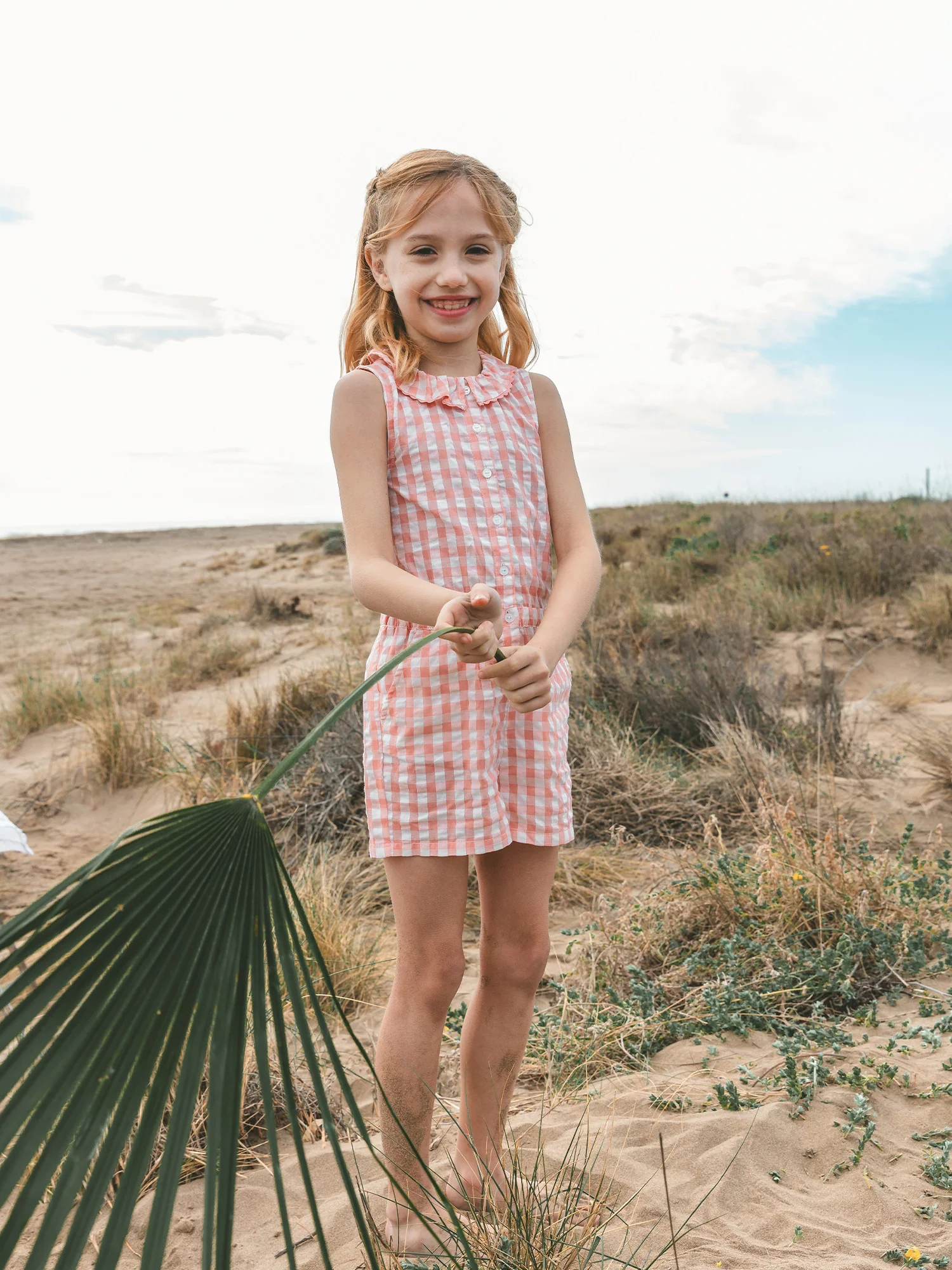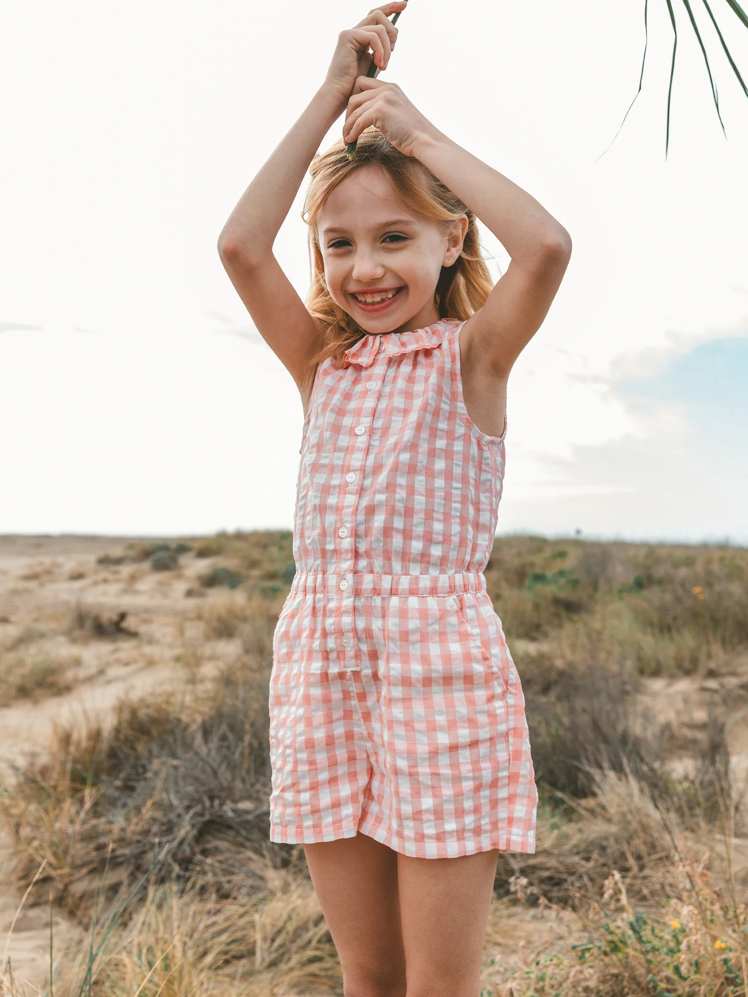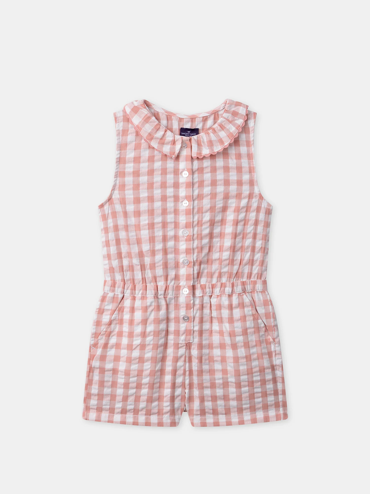 Ce combishort accompagne les enfants dynamiques durant les beaux jours. Réalisé dans une matière légère à carreaux avec taille élastiquée, il assure aisance et liberté de mouvement. Le volant au col et les carreaux roses apportent une touche fraîche et estivale au quotidien.