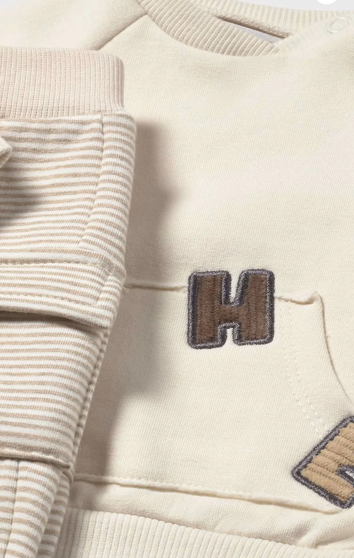 Mayoral RIF. 2639 Felpa manica lunga per neonato. Girocollo. Chiusura con bottoni a pressione sulla spalla che facilitano la vestibilità del capo. Elementi decorativi: applicazione decorativa, ricamo .Pantalone per neonato della linea sporty, molto comodo. Elastico in vita. Orlo elasticizzato per una migliore vestibilità.