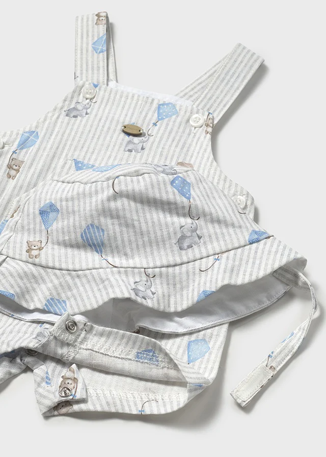 Questo completo body celeste con salopette è la scelta perfetta per il tuo neonato dai 0 ai 18 mesi. Grazie al suo design elegante, il tuo bambino sarà sempre alla moda. Inoltre, il tessuto di qualità garantisce comfort e durata per il tuo piccolo. Acquistalo ora per uno stile unico e di qualità.