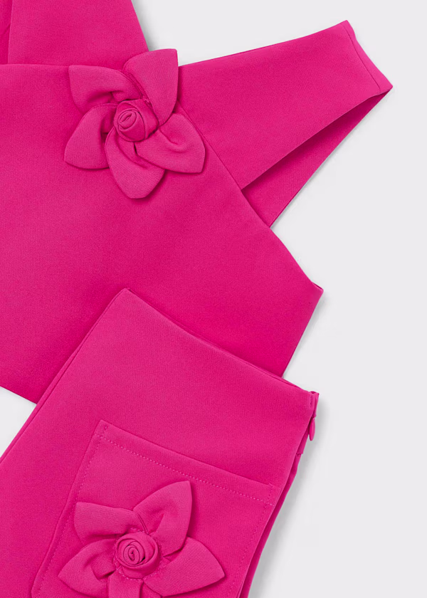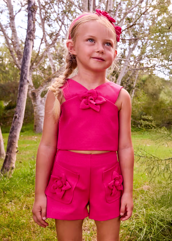 Completo coordinato per bambina con bermuda e top a fiori, perfetto per le giornate di primavera e estate. Il design floreale delicato combina comfort e stile, ideale per giocare e occasioni casual. Realizzato con attenzione ai dettagli, questo set รจ pratico da indossare e facile da abbinare con altri capi del guardaroba della piccola. Art. 3948-094