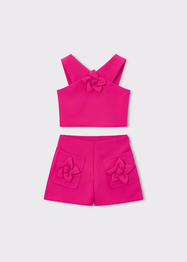 Completo con bermuda e top fiori bambina